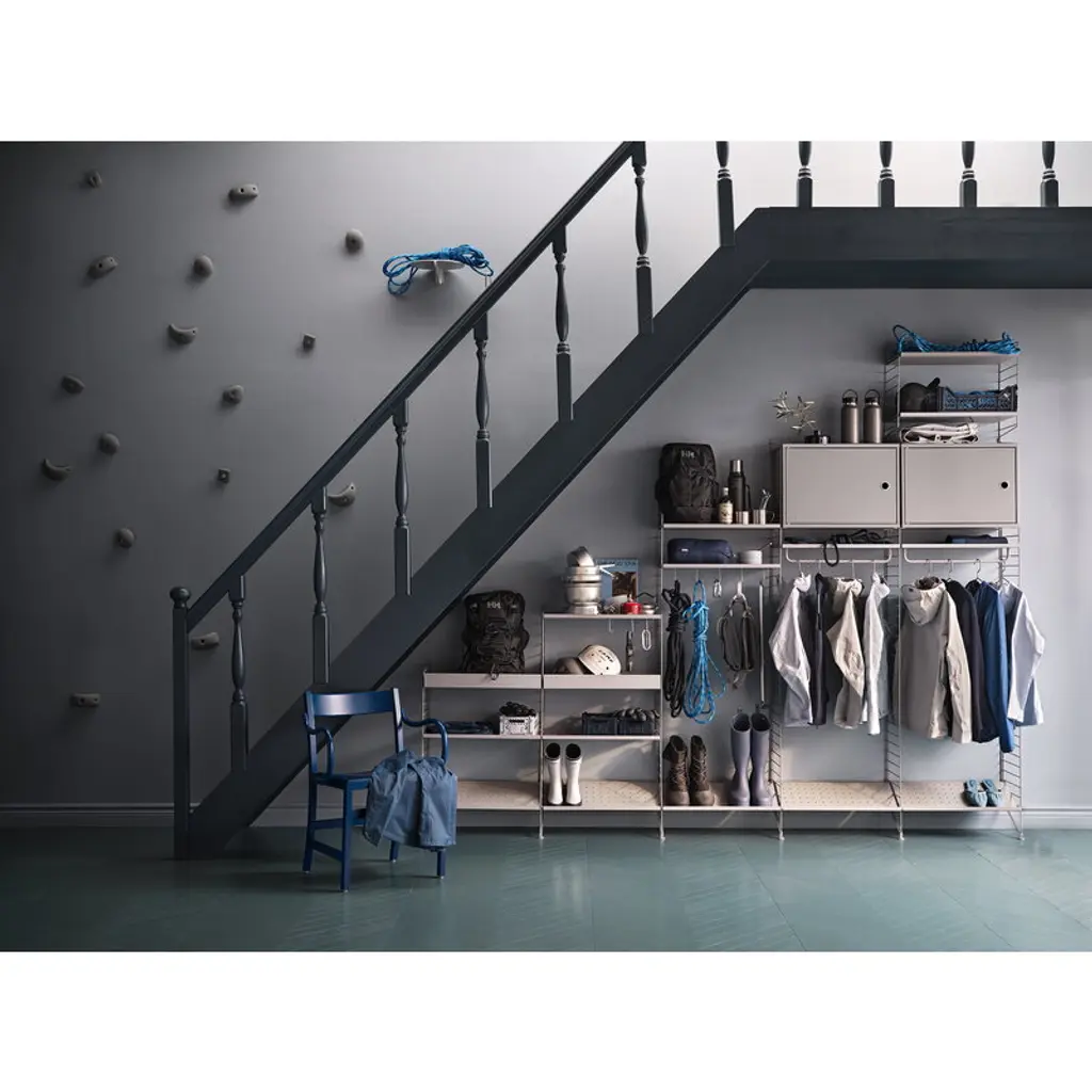 String metal shoe shelf is designed especially for storage solutions of hallways and walk-in closets. The shoe shelf combines with 11.81 in (30 cm) wide String side panels. String System is a flexible shelving system that Swedish architect Nils Strinning designed in 1949. The signature ladder-like side and floor panels can be combined with shelves, magazine shelves, desks, folding tables, chests and cabinets to form a system that best suits your needs. The timeless and minimalist design of String System is perfect for both contemporary homes and offices.
