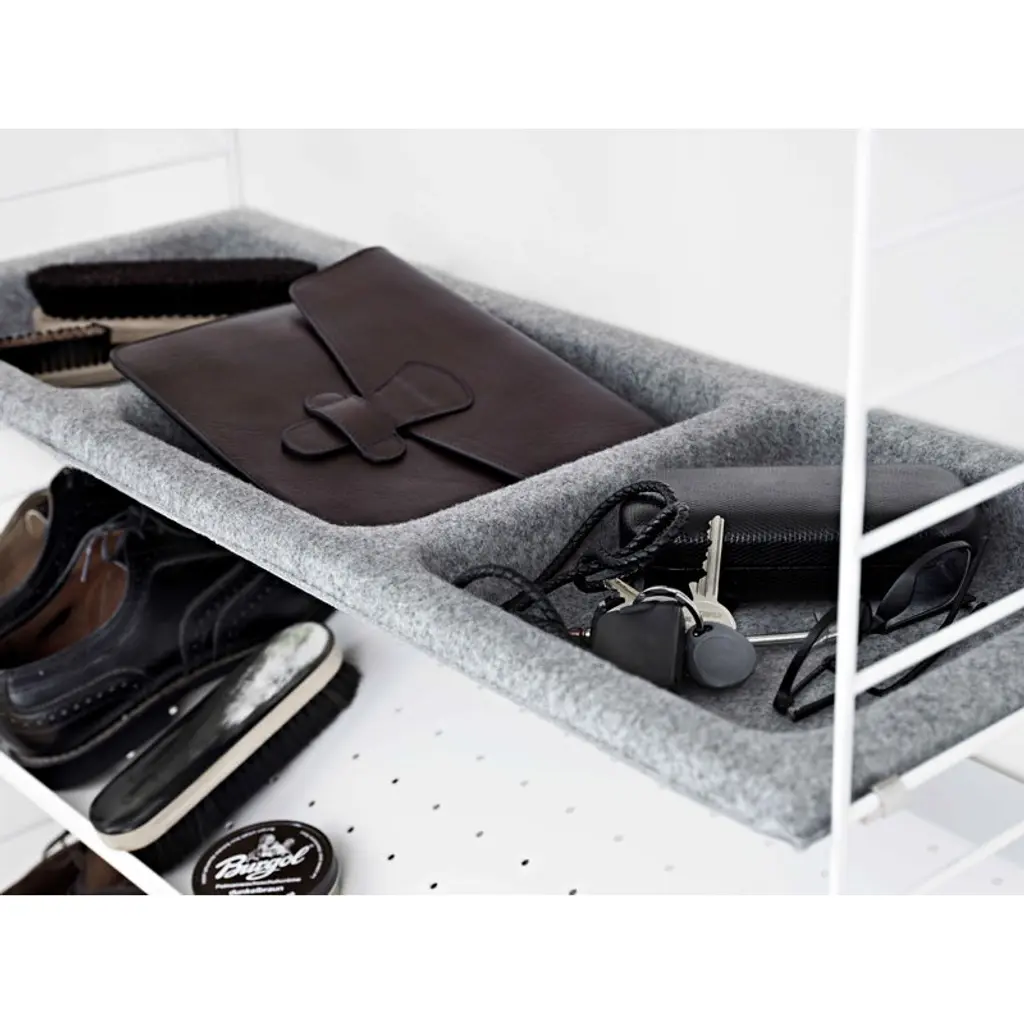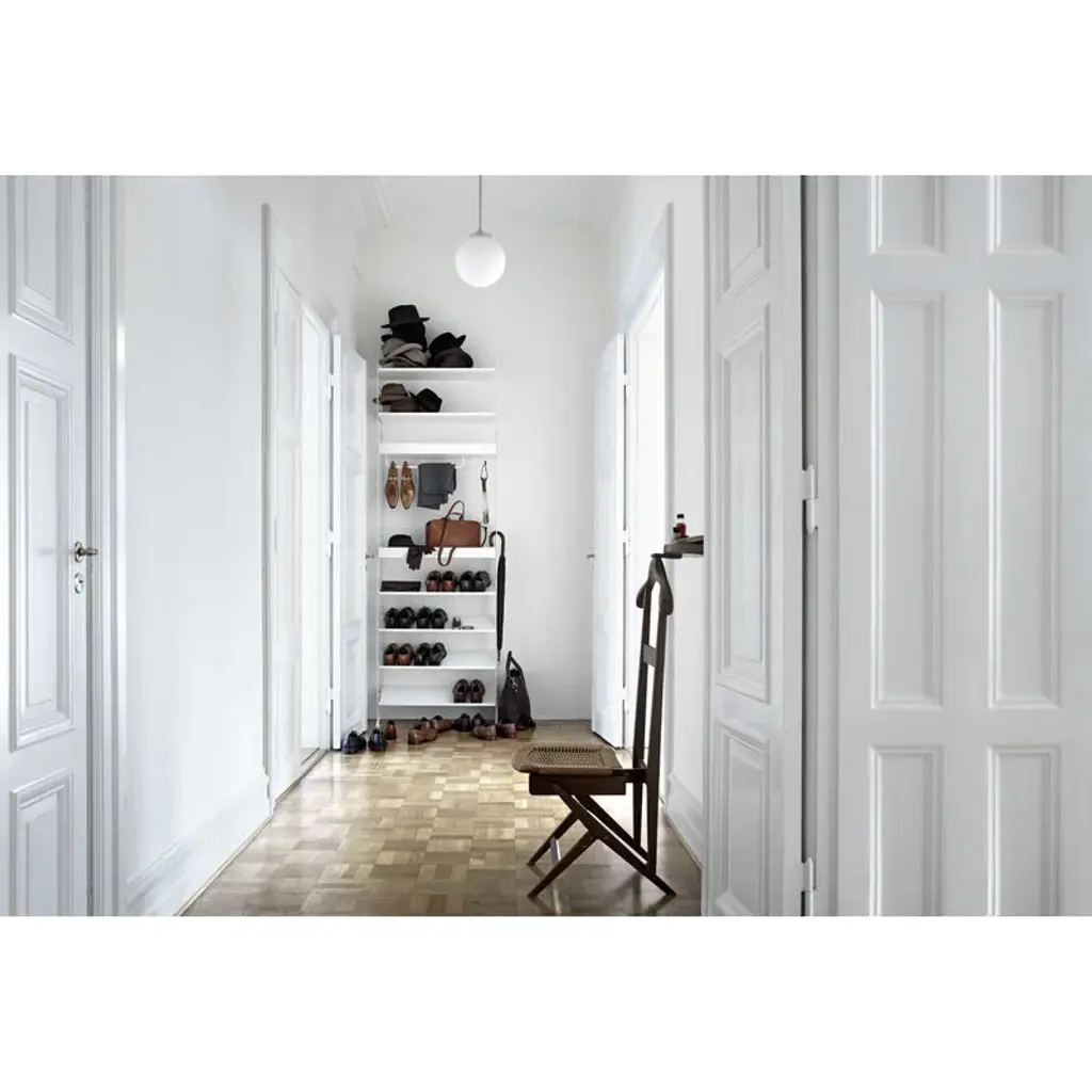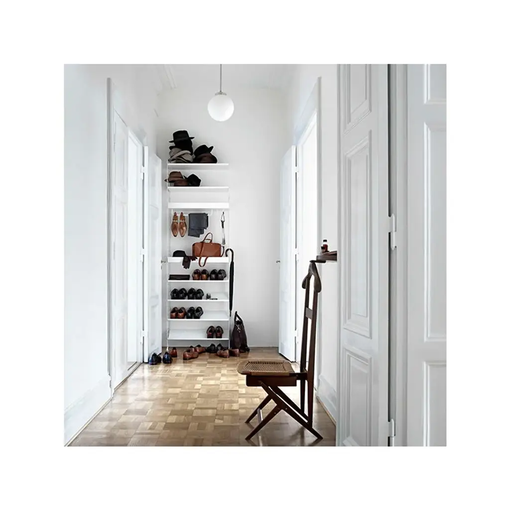 String metal shoe shelf is designed especially for storage solutions of hallways and walk-in closets. The shoe shelf combines with 11.81 in (30 cm) wide String side panels. String System is a flexible shelving system that Swedish architect Nils Strinning designed in 1949. The signature ladder-like side and floor panels can be combined with shelves, magazine shelves, desks, folding tables, chests and cabinets to form a system that best suits your needs. The timeless and minimalist design of String System is perfect for both contemporary homes and offices.