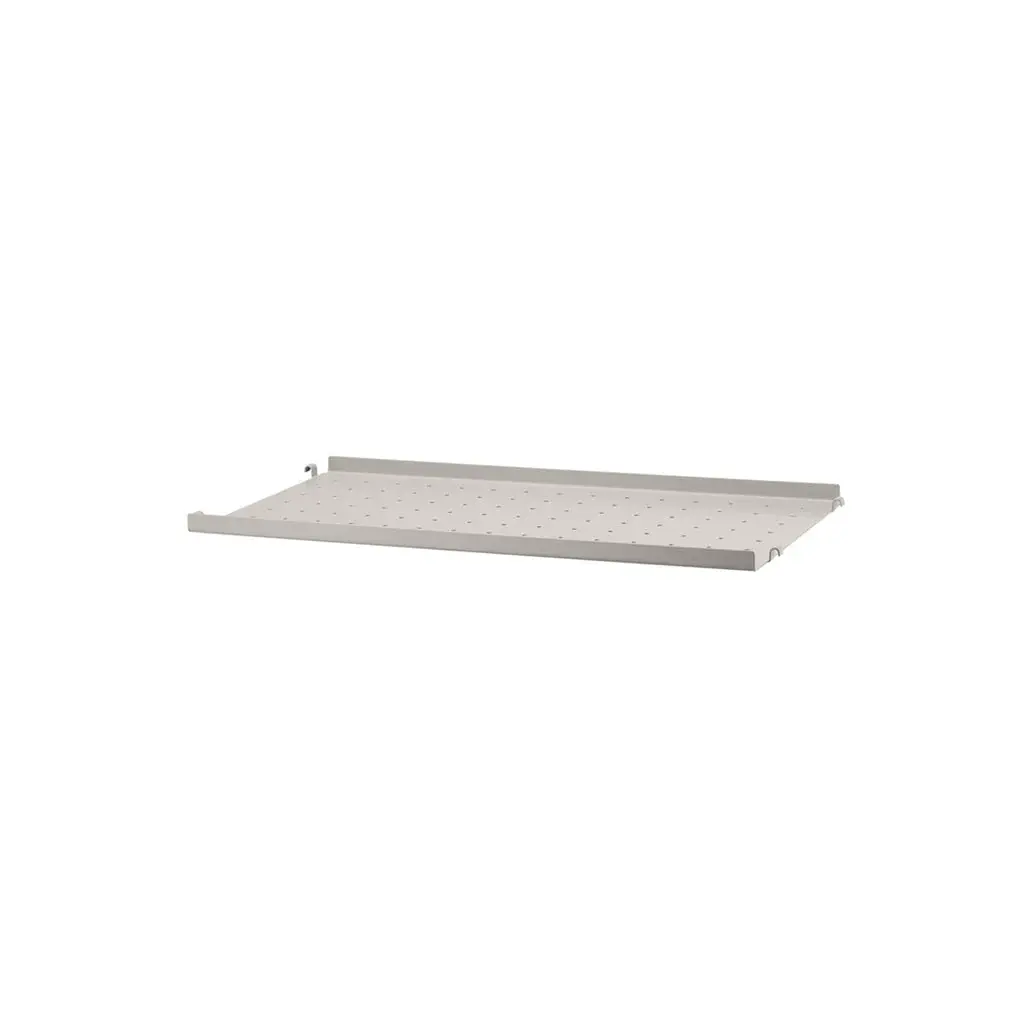 For extra functionality, String offers a shelf option in fine-textured coated steel that allows for an expanded range of storage solutions. The metal shelving can accommodate accessories like hooks, rods, hangar racks and bottle trays. Available in 2 versions, with either lower or higher edges, to provide maximum flexibility for all manner of customized installations.