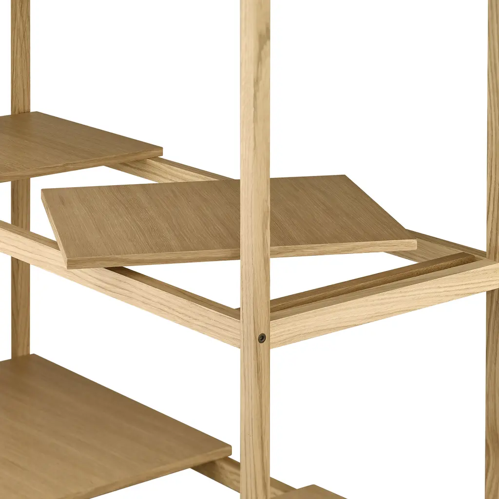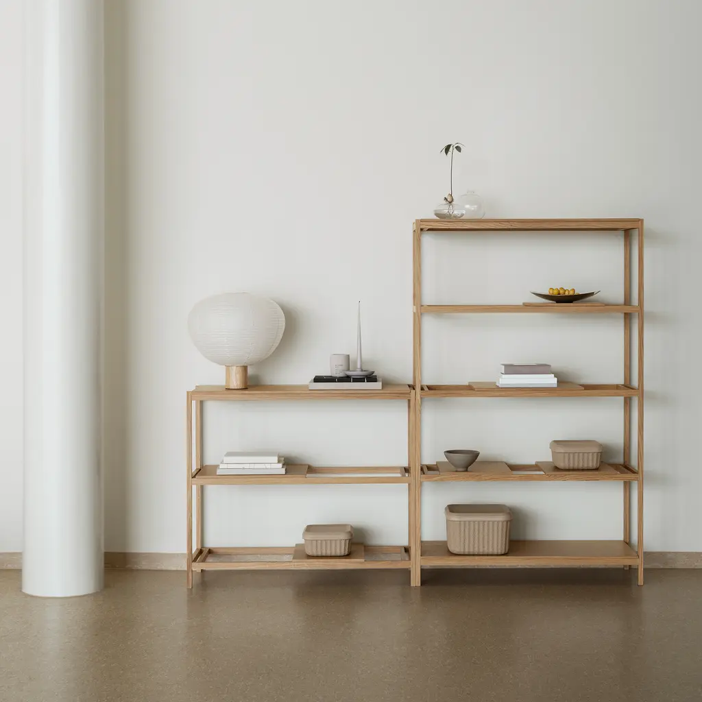 The Sukoya Shelf – Low is a refined storage solution designed by Japanese designer Kazushige Miyake for blomus. True to its name, inspired by the Japanese term for a square, this shelf emphasizes structure, precision, and versatility. With a clean-lined oak frame and adjustable veneer shelves, it offers a flexible way to display books, decor, and everyday essentials while maintaining a minimalist presence. Designed to prioritize your objects rather than itself, the Sukoya Shelf – Low provides practical storage without overwhelming a space. Its compact height makes it ideal for smaller rooms, entryways, or as a media stand, while the freestanding design allows for effortless styling in any interior. The movable shelves let you customize the layout, adapting to your changing needs. Available in natural lacquered oak or white lacquered oak, this shelf is FSC-certified, ensuring responsible sourcing. Thoughtfully engineered for easy assembly, it’s a functional yet understated addition to modern interiors—whether used alone or combined with its taller counterpart for a cohesive storage setup.