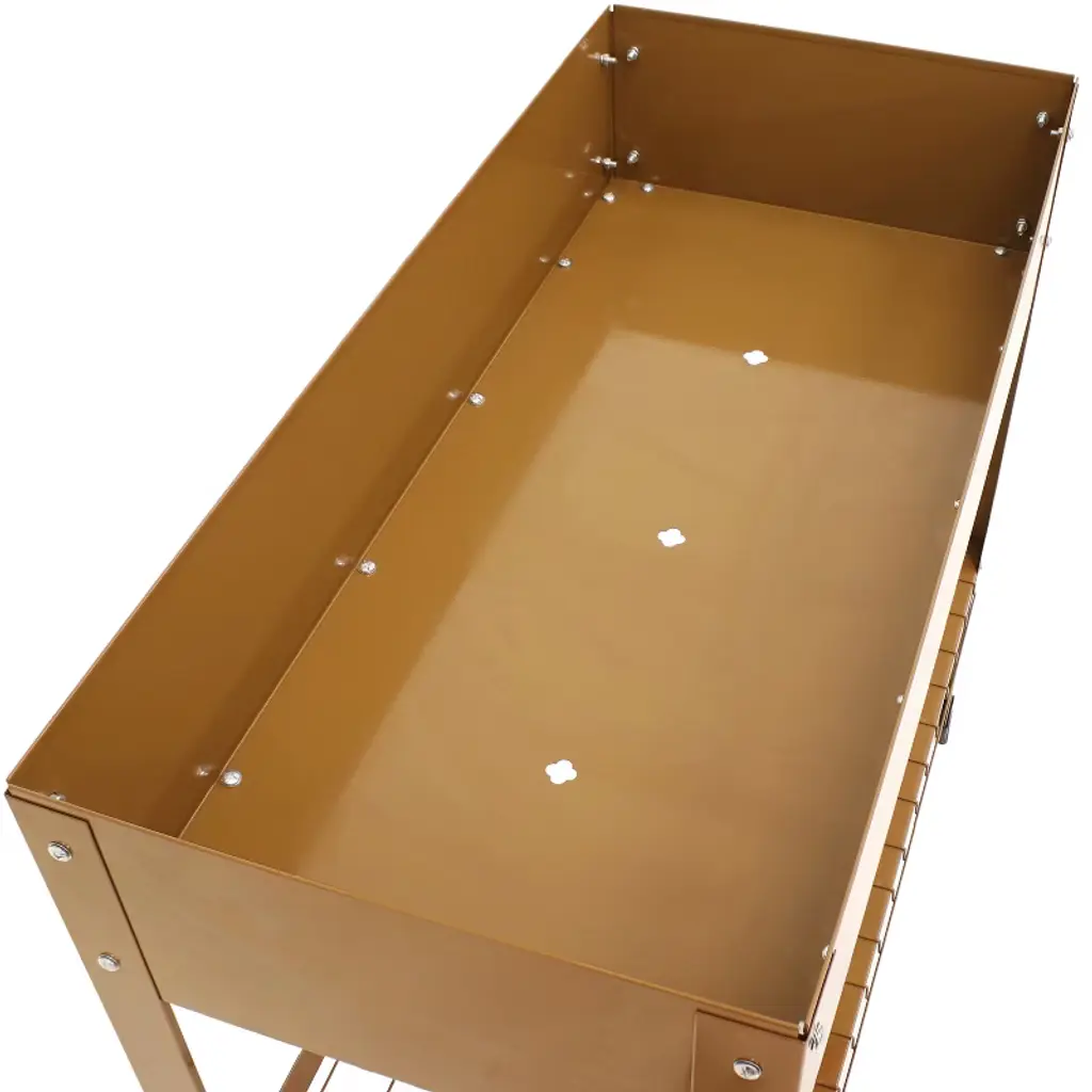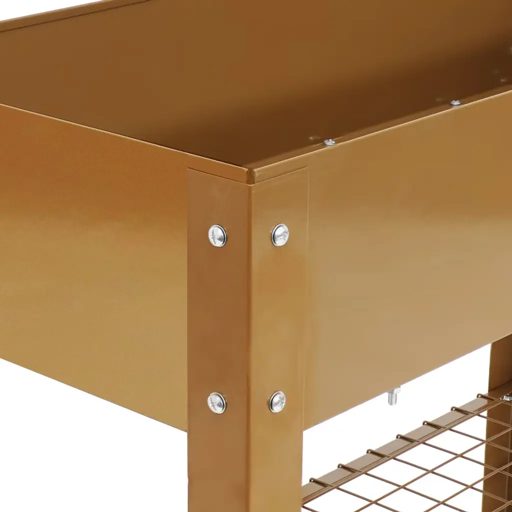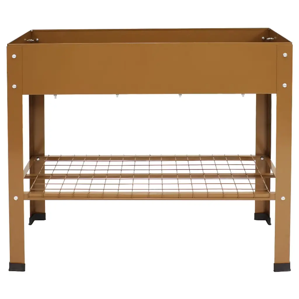 Grow beautiful flowers and bountiful vegetables without back straining or crouching down with these stylish and durable galvanized steel raised garden beds. This set of 2 standing planters can be used individually or connected together to create the best arrangement for your patio or garden. These raised garden beds are built to last with a durable steel construction and a rust-resistant, hot dip galvanized finish in classic brown for a sleek look. Plus, these raised garden beds with legs also feature a convenient lower shelf that can be used to store garden tools, gloves, and other supplies. With enough space to grow multiple plants all at the same time, this raised steel garden bed is sure to bring bright, beautiful blossoms to your home with ease. Light up your backyard or garden with this raised bed and watch your plants flourish. Everything needed to assemble this piece is included in the box.• RAISED PLANTER BOXES: Each raised garden measures 35.75" W x 16" D x 31.75" H and weighs 25 lbs. The inner garden bed measures 35.5" W x 15.75" D x 7" H. The shelf measures 30.5" W x 16" D and is 9.75" high off the ground. The garden bed has an overall weight capacity of 110 lbs and the bottom shelf can support up to 65 lbs. The overall unit has a weight capacity of 175 lbs.• QUALITY CONSTRUCTION: These stylish raised garden beds with legs are made from durable steel with a sleek, brown hot dip galvanized finish for lasting rust resistance and an elegant look. It also features eight rubber feet caps.• CONVENIENT CONFIGURATIONS: These elevated garden beds can be used individually or connected together. When connected side by side, they create a garden bed that measures 35.75" W x 32.25" D x 31.75" H. When connected end to end, they create a garden bed that measures 71.75" W x 16" D x 31.75" H.• LOWER STORAGE SHELF: Easily store gardening tools and supplies on the shelf beneath the raised planter box.• WORRY-FREE PURCHASING: Sunnydaze Decor backs its products with a 1-year manufacturer's warranty.