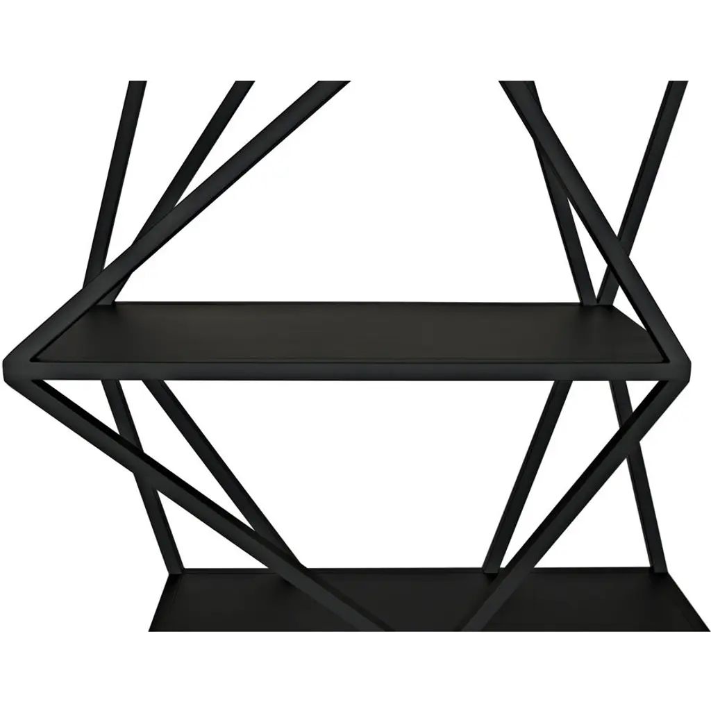 Industrial strength steel framing to create this unique and edgy shelf. The metal is finished simply in matte black to give a sophisticated and contemporary vibe.
