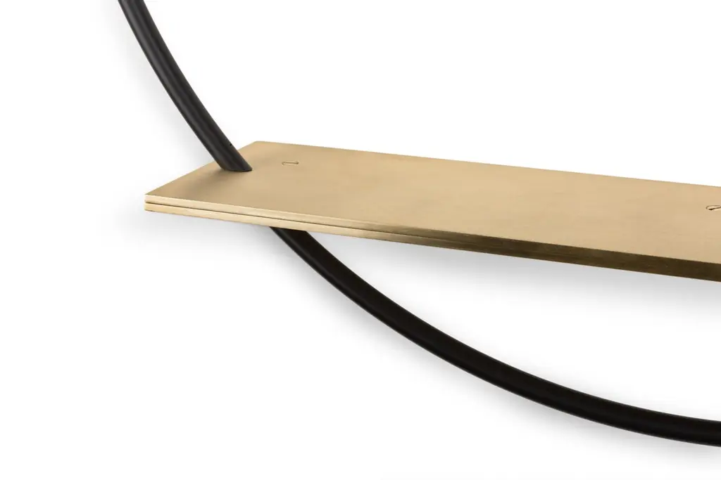 Tableau Shelf by MingardoDimensions: D55 x H55 cm Materials: Iron with brassed detailsWeight: 12 kgAlso Available in different finishes.Tableau is a functional painting, a wall decoration designed to frame everyday objects.Mingardo Ilario founded Mingardo Blacksmith Workshop in 1970, after over twenty years’ experience in the metal processing field.The production was initially focused on simple blacksmith works for the construction industry. Over the time, it has become more refined, enabling the company to collaborate with internationally renowned companies and architects: from the first collaborations with architect Carlo Scarpa to the more recent commissions for Museo del Novecento in Milan, Parco della Musica in Florence, and Teatro Petruzzelli in Bari.Over the years, the Workshop has achieved great results, with the production of unique metal products, all hand-wrought by a highly skilled team of specialized artisans. Nowadays, it is highly regarded in the local artisan field for its high-end refined finishing touches and details, and for its know-how