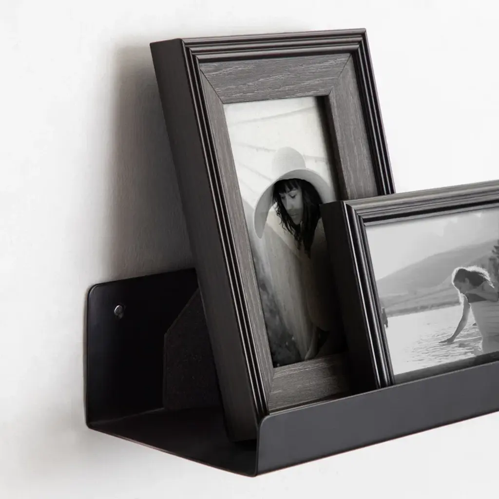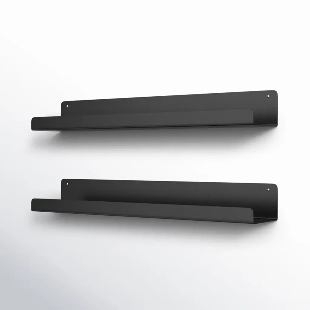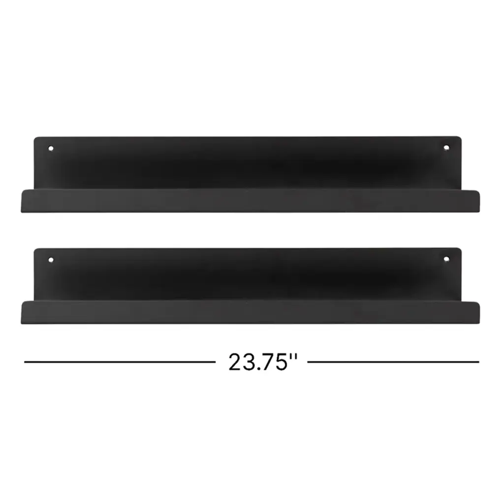 A protective ledge holds your plants + photos in place on this minimalist floating wall shelf. Built from heavy-duty metal, it holds up to 10 lbs. and features a durable painted finish that resists everyday wear. Pre-drilled holes + included hardware make installation as easy as styling. Set of two.