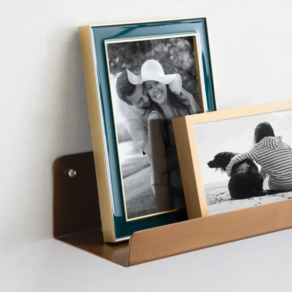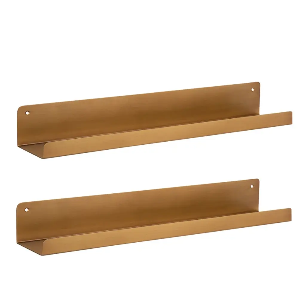A protective ledge holds your plants + photos in place on this minimalist floating wall shelf. Built from heavy-duty metal, it holds up to 10 lbs. and features a durable painted finish that resists everyday wear. Pre-drilled holes + included hardware make installation as easy as styling. Set of two.