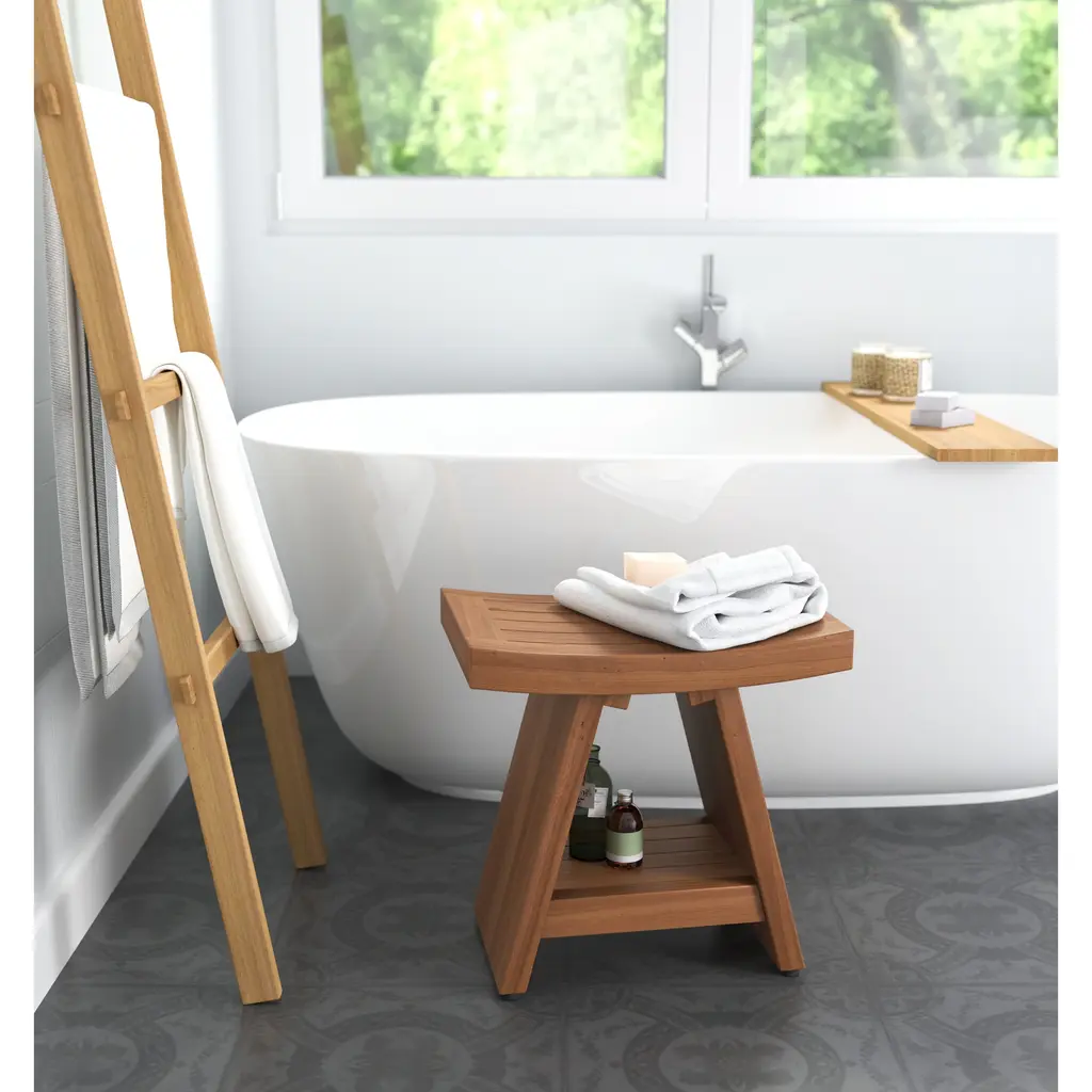 The Original Asia Teak Shower Bench - 18" Wide With Shelf - Teak Oil