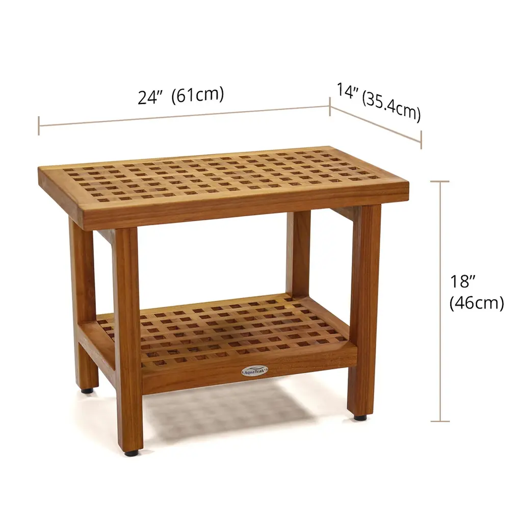 The Original Grate Teak Shower Bench - 24" Wide With Shelf - Teak Oil