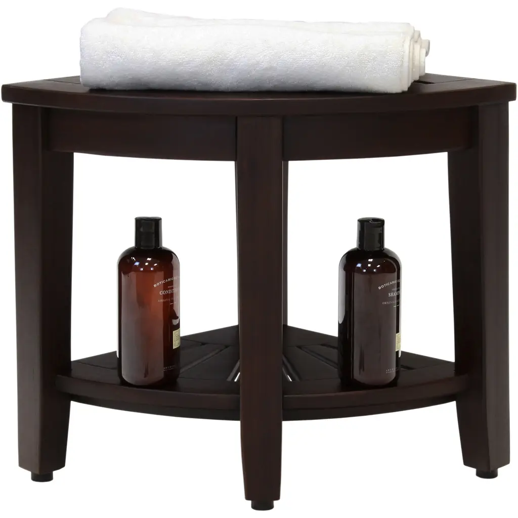 The Original Kai Corner Teak Shower Bench - 15.5" Wide With Shelf - Mocha