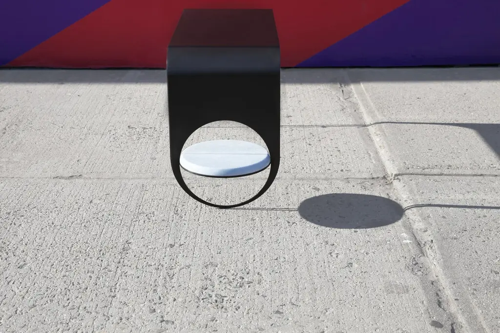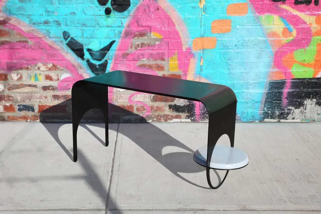 Thin Table 2 In Contemporary Blackened Steel With Blue Marble Shelf