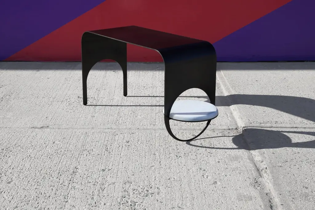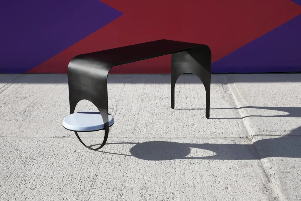 The Thin 2 is the embodiment of subtlety with its smooth, bent steel frame and whisper touch to the floor. The hovering shelf adds to the illusion that the piece is in the process of floating to the ground—or about to take off.