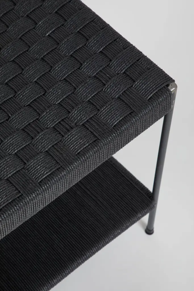 Three Seat Double Rail Handwoven Grid-Weave Danish Cord Bench With Shelf