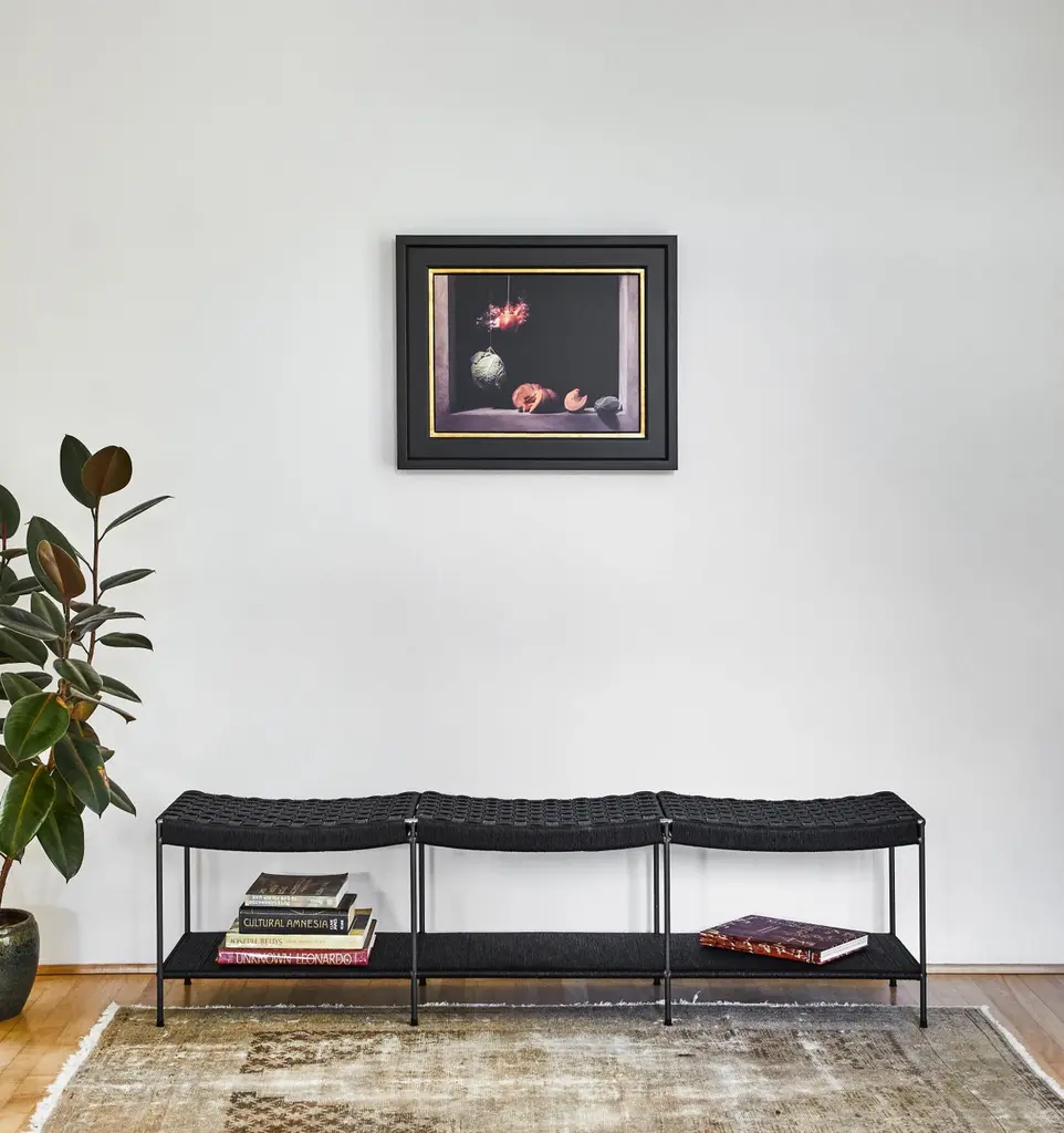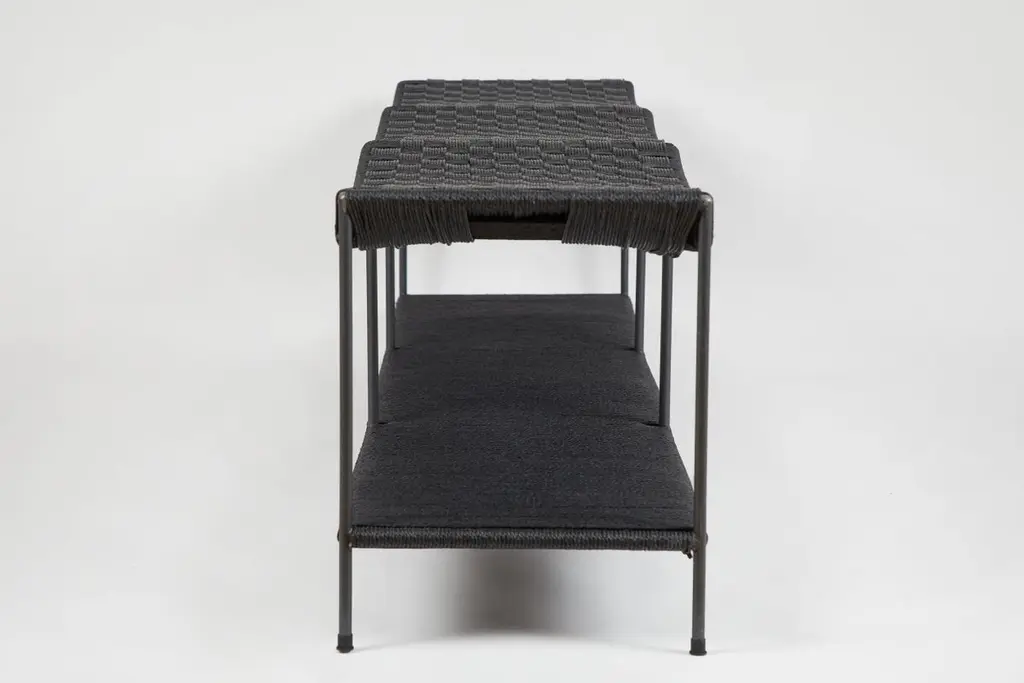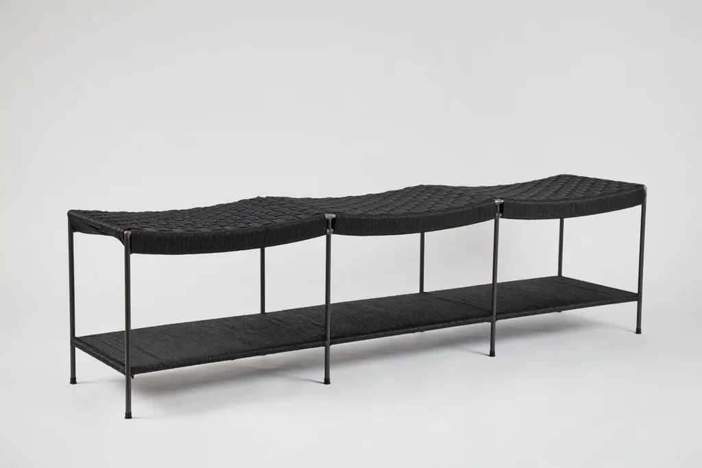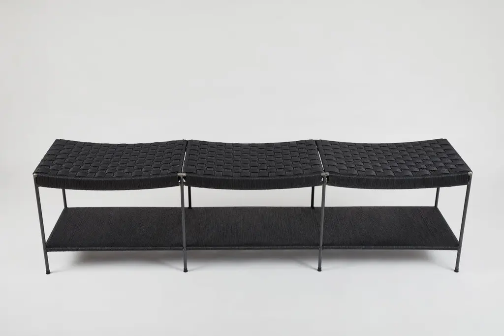 The bench is hand-woven by a master weaver with over 40 years experience. We use 70% recycled steel for the frame plated in bronzeDesigned by a former art dealer who represented contemporary artists for over 30 years including some of the giants of minimalist art. The inspiration the designer took from working with minimalist artists over decades is realized in the principles of simplicity, honesty, utility at the heart of MIlwood Design. Hand made locally in Venice, California.