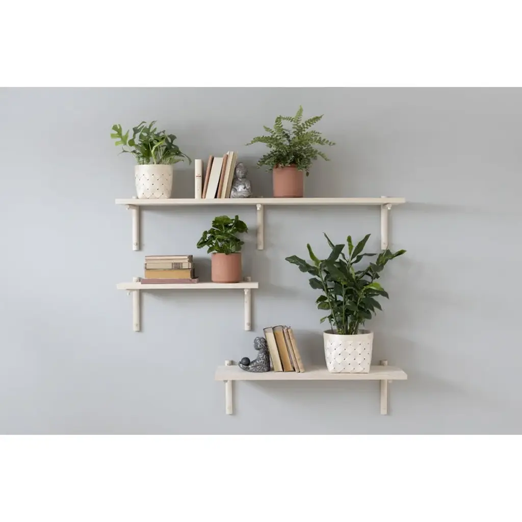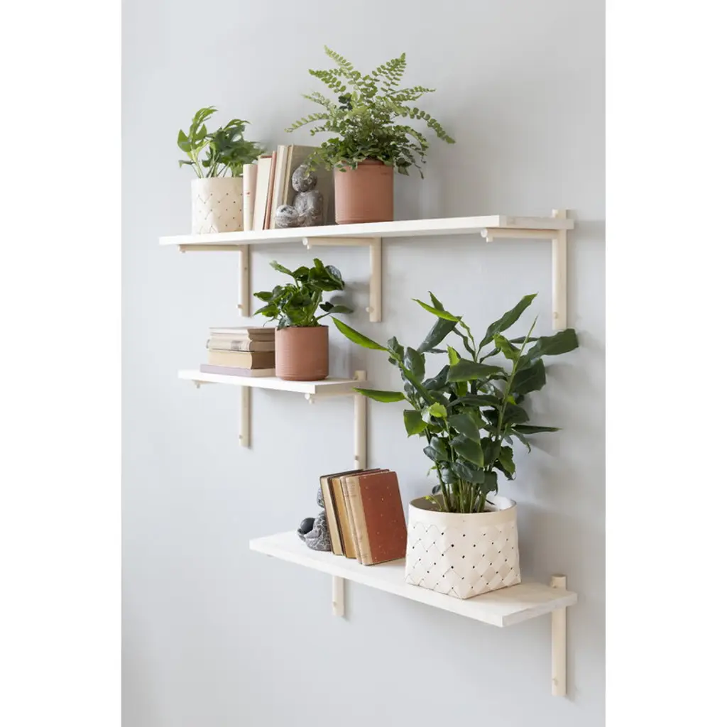 The Tikas wall shelf by Finnish Verso Design is made of solid birch, which is treated naturally with oil wax. The simplistic wooden shelf is supported by wall brackets. The shelves can be used individually, or you can create a larger shelving system by combining the different sizes. The Tikas wall shelf works as a perfect place for decorative objects, books as well as house plants in every room of the house.