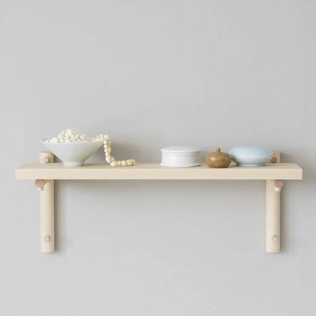 The Tikas wall shelf by Finnish Verso Design is made of solid birch. The simplistic wooden shelf is supported by wall brackets. The shelves can be used individually, or you can create a larger shelving system by combining the different sizes. The Tikas wall shelf works as a perfect place for decorative objects, books as well as house plants in every room of the house.