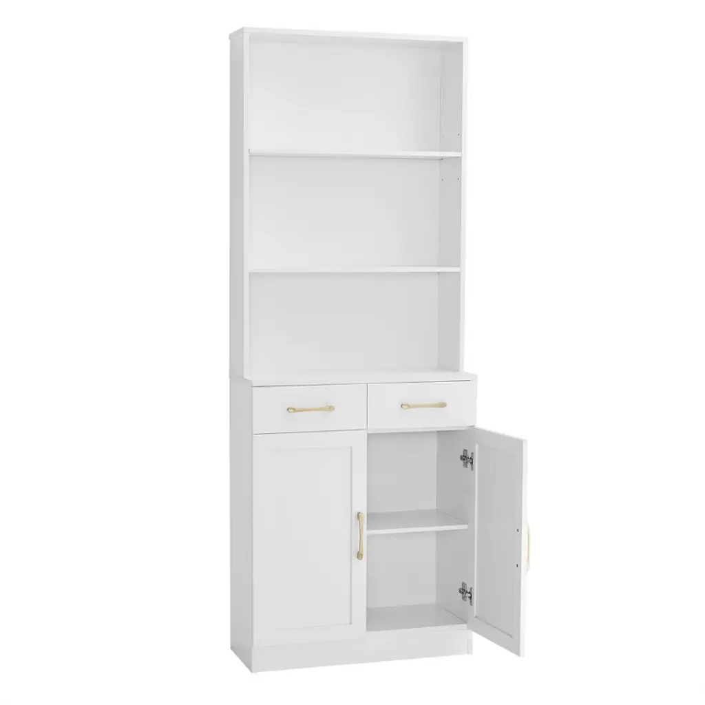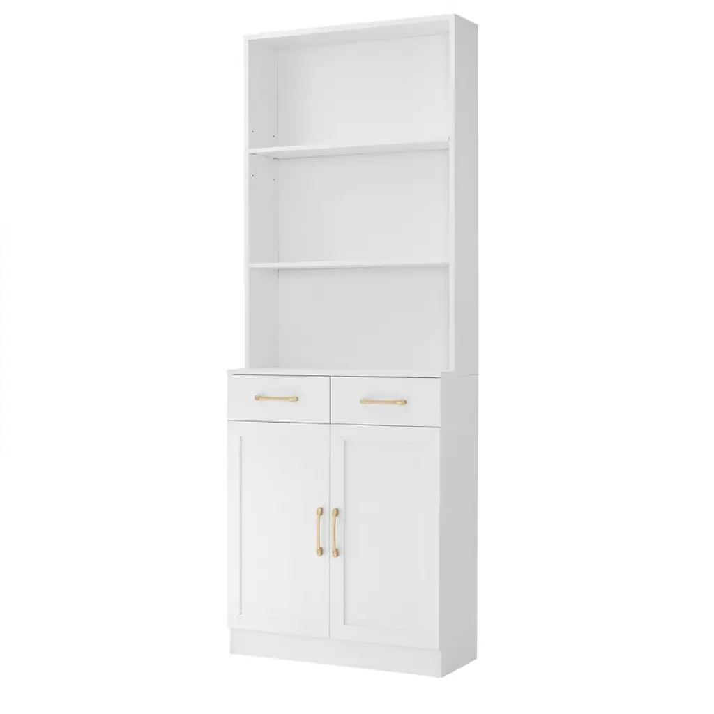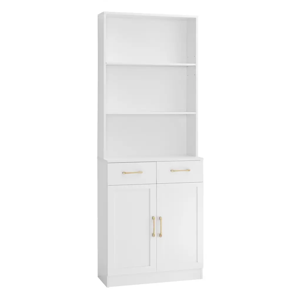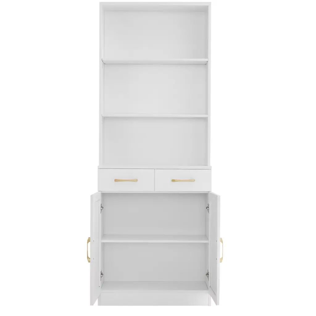 Tiramisubest Bathroom Storage Cabinet, Cabinet With Two Doors And Drawers, Adjustable Shelf, Three-layer Open Shelf, Mdf Board, White