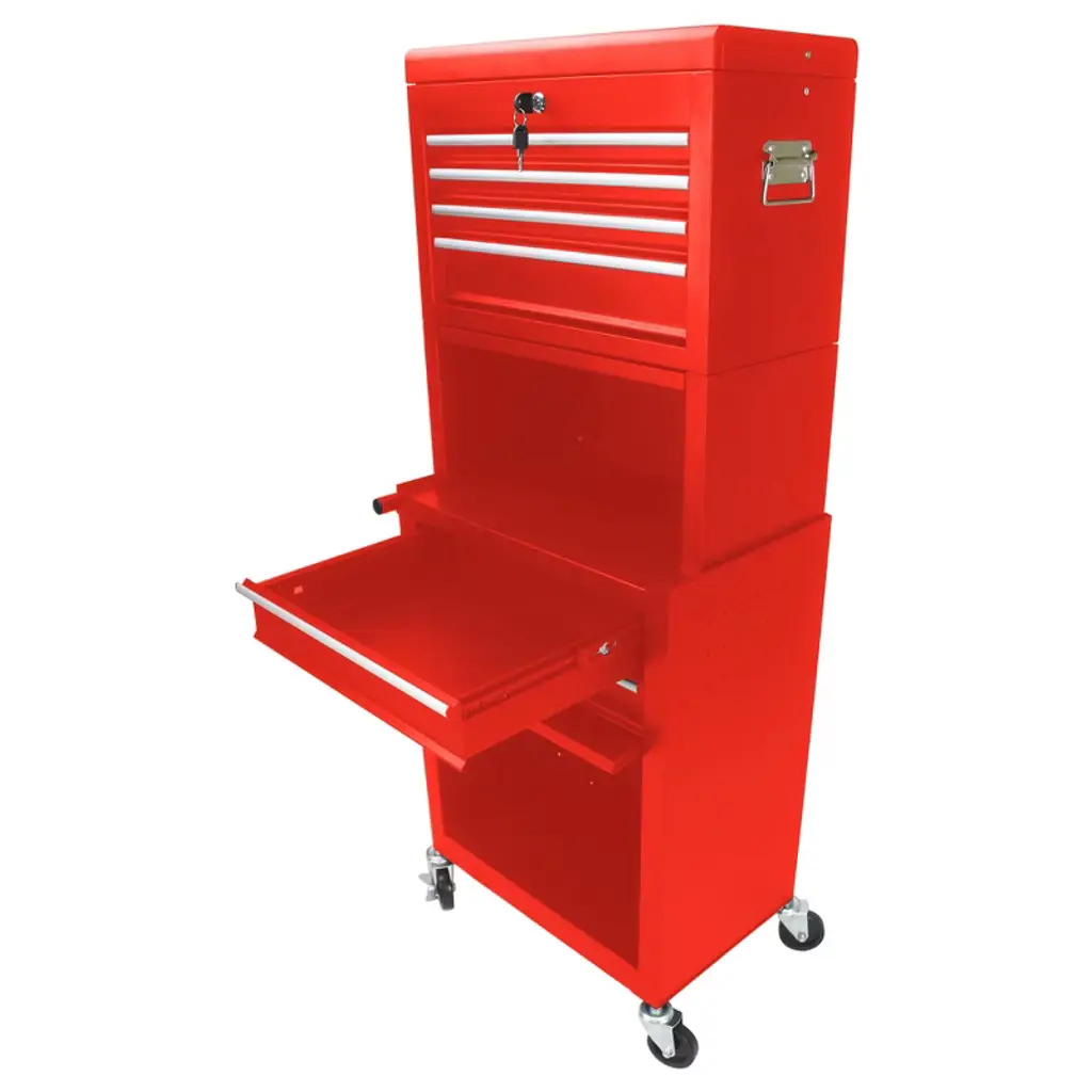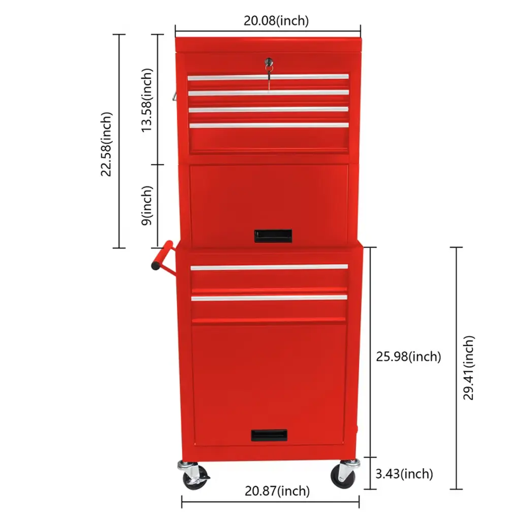 Tool Cabinet on Wheels provides versatile storage solution for Red Steel finish. With 25.98'' height and 55.4lbs capacity, perfect for corporate environment. Features include There are six drawers in the metal tool cabinet.. This product is designed for efficient storage and organization.