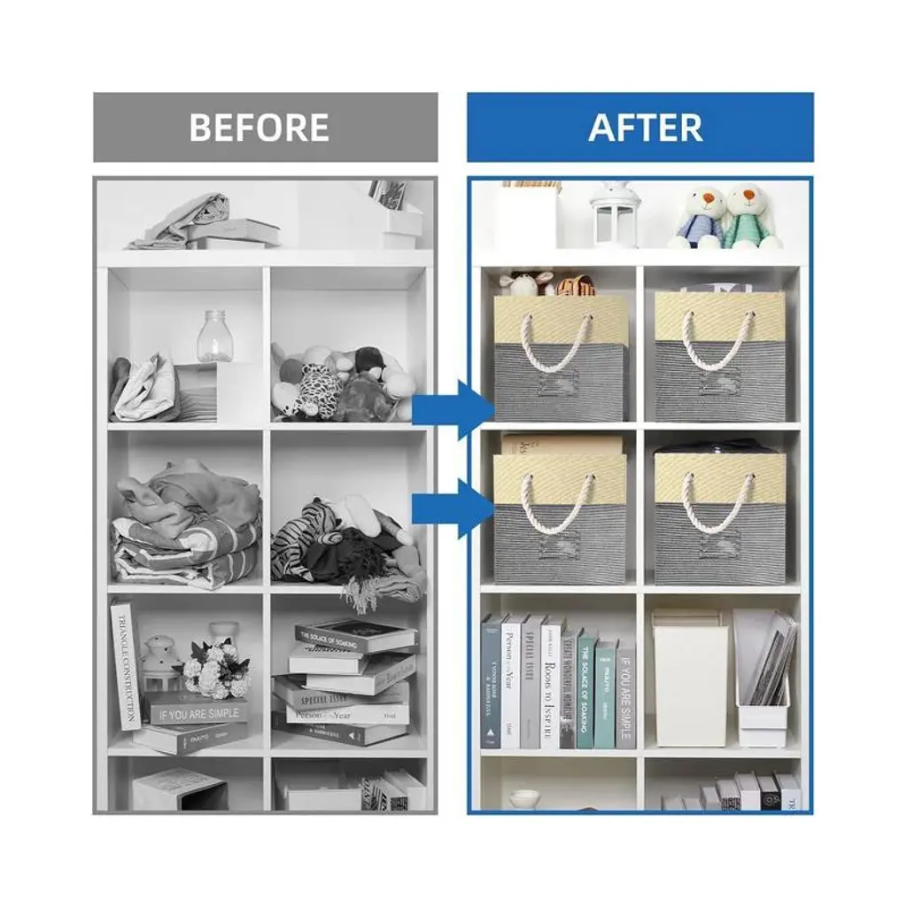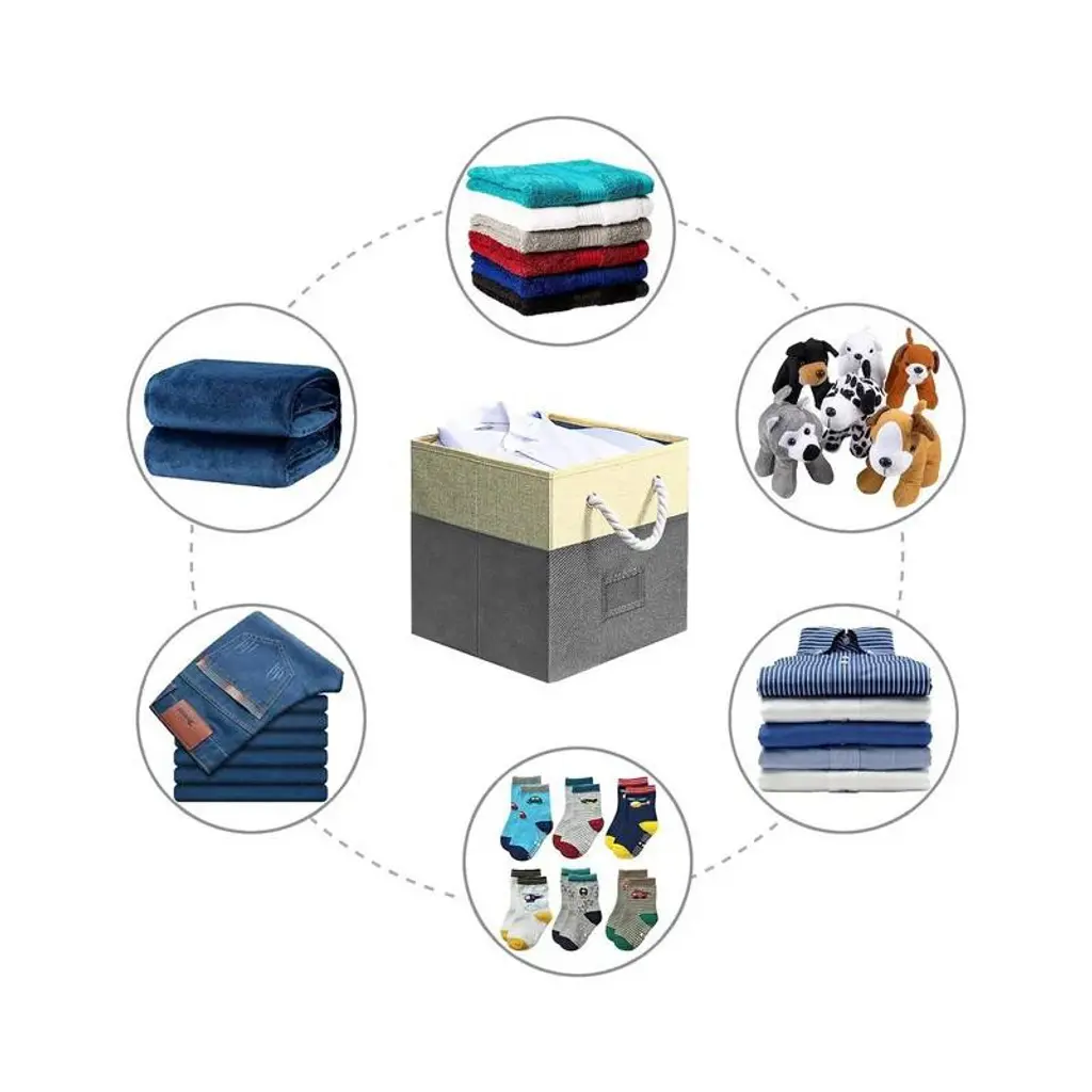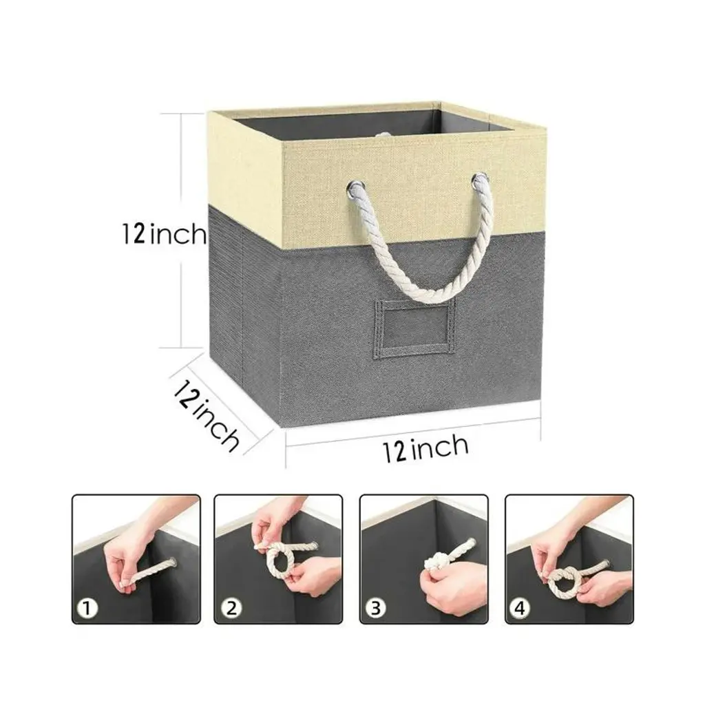 High Quality Material: These 4-Pack Cube Storage Bins Are Constructed Of Durable Nonwoven Polypropylene & Cardboard. The Sturdy Cotton Handles Make It Easy To Carry Transportation. And A Tag Holder For Labeling What's Inside. Unique Design: Designed To Match Interior Decor And Style In Any Room In The Home. Enjoy The Relaxing Ambiance Of The Soft Beige & Gray Neutral Color Scheme.Dimensions(Each): 12"(L) X 12"(W) X 12"(H) Storage And Organization: The Fabric Storage Cube Basket Is Very Spacious And Can Hold A Lot Of Things, Keeping Your Closet, Shelf, And Room Organized- Complete Storage Cubes, Closet Spaces, Nurseries, And More. Space Saving: Side Design Makes These Cube Organizer Bins Collapsible Which Will Take Full Advantage Of Your Closet Shelf, And Also Can Be Folded Flat To Save Space When Not In Use. Use These Square Cloth Basket Organizers In The Kid's Room, Toy Storage, Nurseries, Family Room, Laundry Area, Closet, Storage Room, Etc - Sit Cube Storage Organizer Bins On The Floor, In The Closet, Bookcase, Desk, Shelving Area, And Cubbies.
