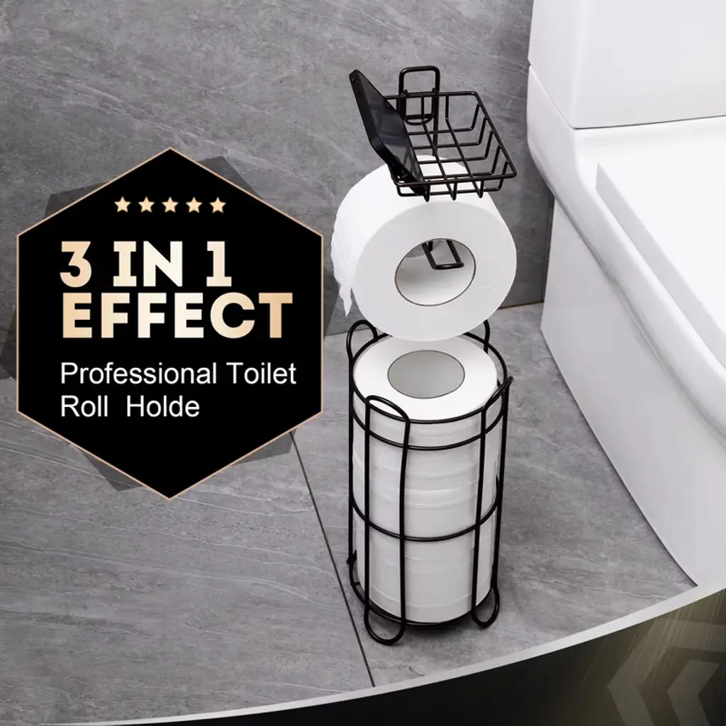 Easy Assembly: No tools or screws needed for installation, simply assemble by hand.All-In-One Convenience: Features a built-in magazine/tablet holder to keep your essentials within reach.Enhanced Stability: The addition of a circle on the feet ensures better balance and prevents tipping over.Versatile Bathroom Addition: Perfect for guest bathrooms or small spaces, this toilet paper holder stands at 24" height and adds a stylish and functional touch to any bathroom.