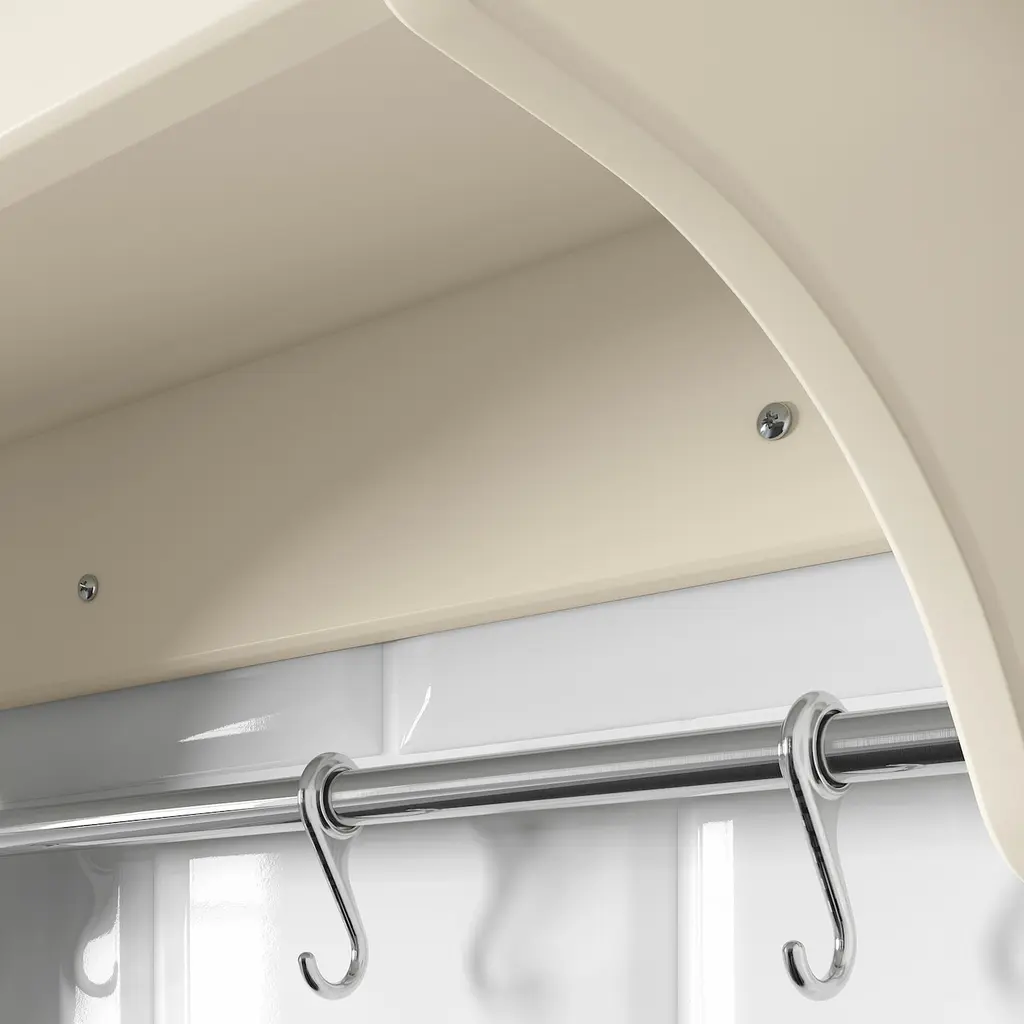 TORNVIKEN Wall shelf - off-white 19 5/8 ". The wall shelf makes it easy for you to see and reach the things you use every day. 10-year Limited Warranty. Read about the terms in the Limited Warranty brochure. Three hooks included. Allows you to hang e.g. kitchen utensils and towels within easy reach.