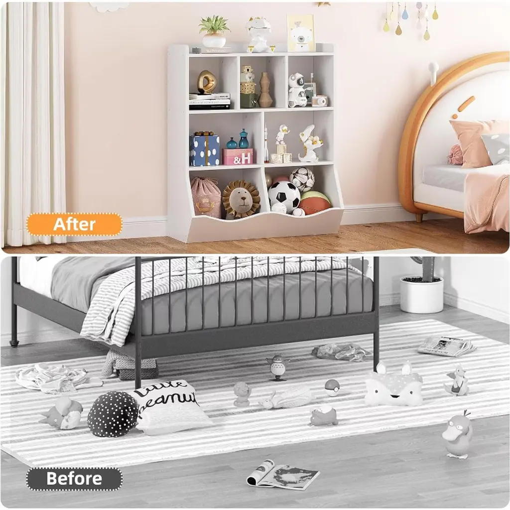 Toy Storage Cabinet, Three-tier Kids Bookshelf And Bookcase For Storage Books And Toys, Multi Shelf With Cubby Cabinet