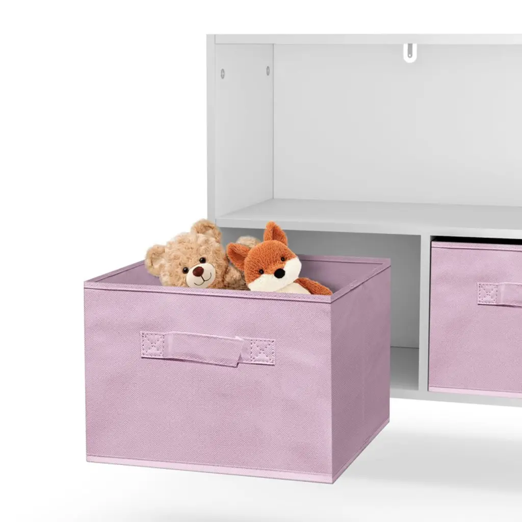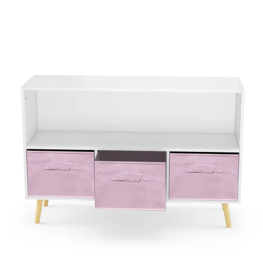 Toy Storage Organizer Bookshelf With Storage With 3 Collapsible Fabric Drawers And Pine Legs, Kids Bookcase And Top Shelf For Playroom Nursery Pink