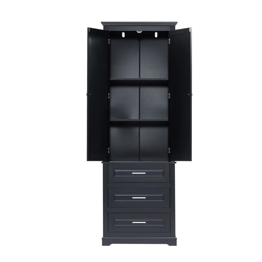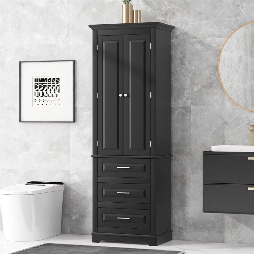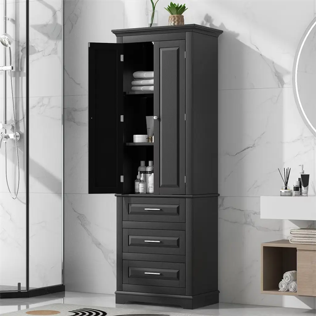 This tall storage cabinet features a sturdy MDF frame with a smooth, waterproof painted finish for easy cleaning. Metal handles, hinges, and drawer slides ensure long-lasting durability. The sleek design combines functionality with modern aesthetics, making it a reliable storage solution for bathrooms, offices, and other spaces in your home.