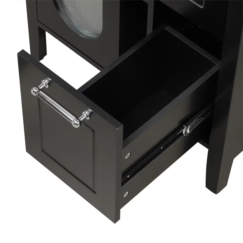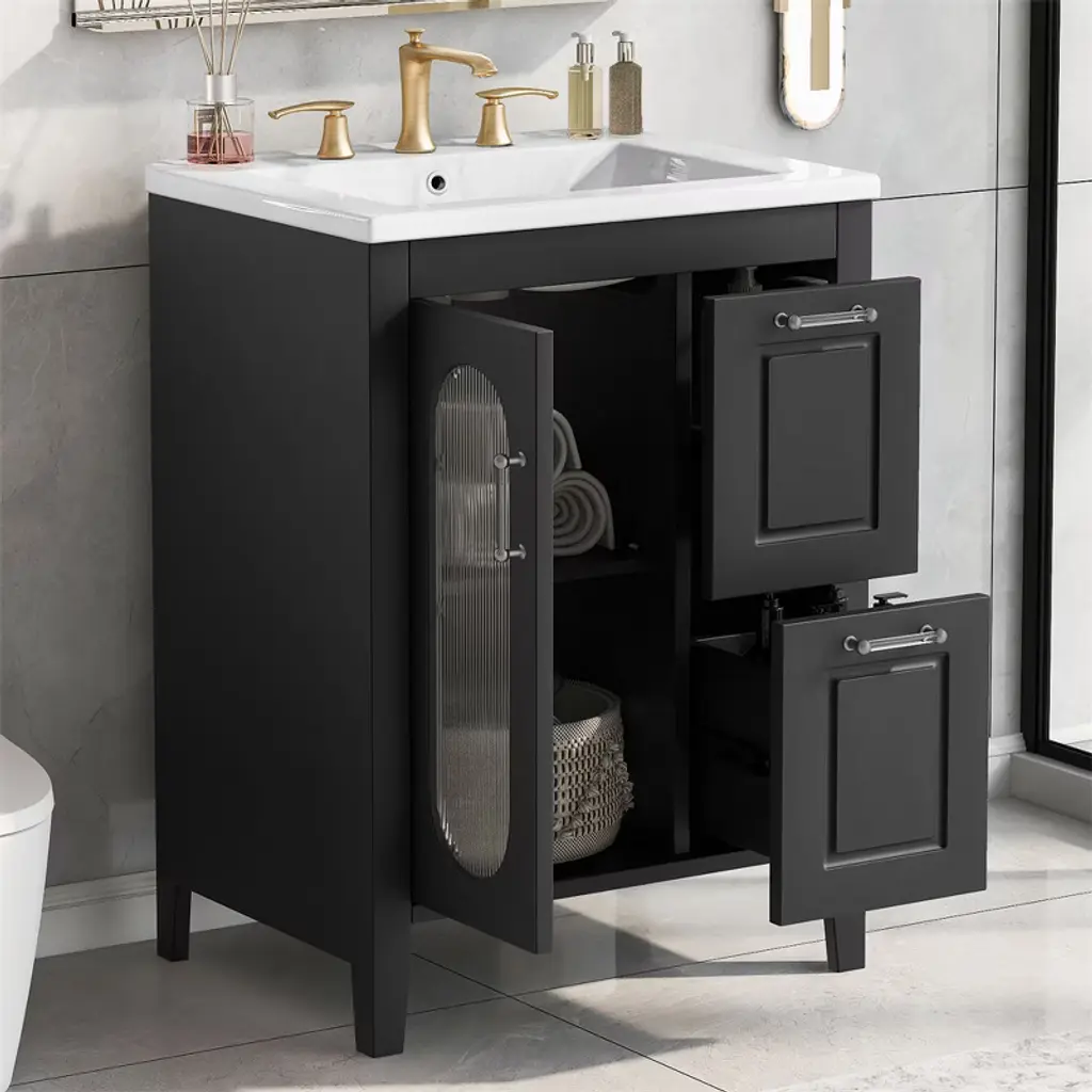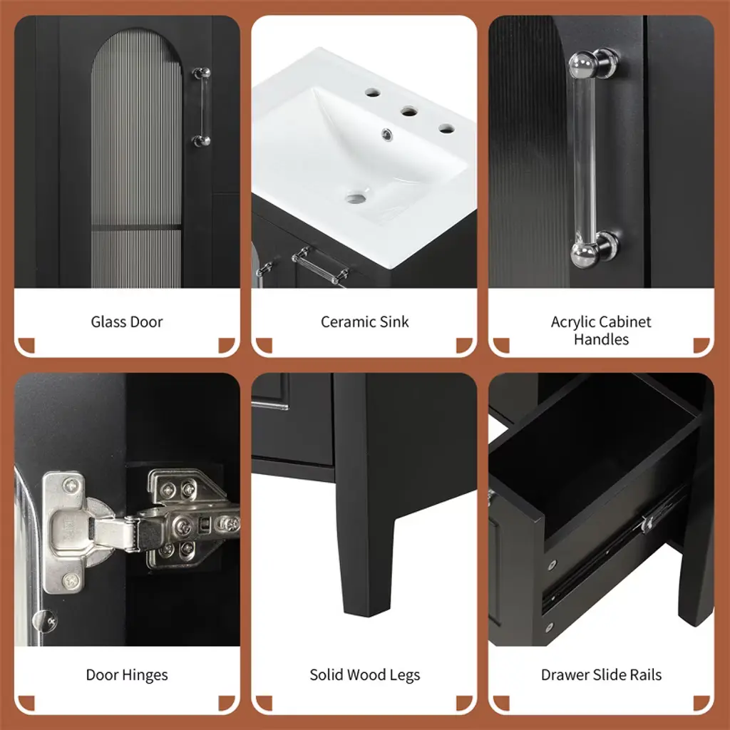 Tramull Black Elegant Bathroom Vanity With Ceramic Sink, Solid Wood & Mdf Construction, Adjustable Shelf & Glass Door