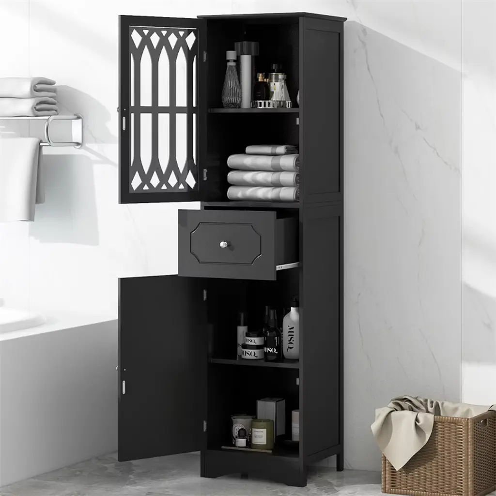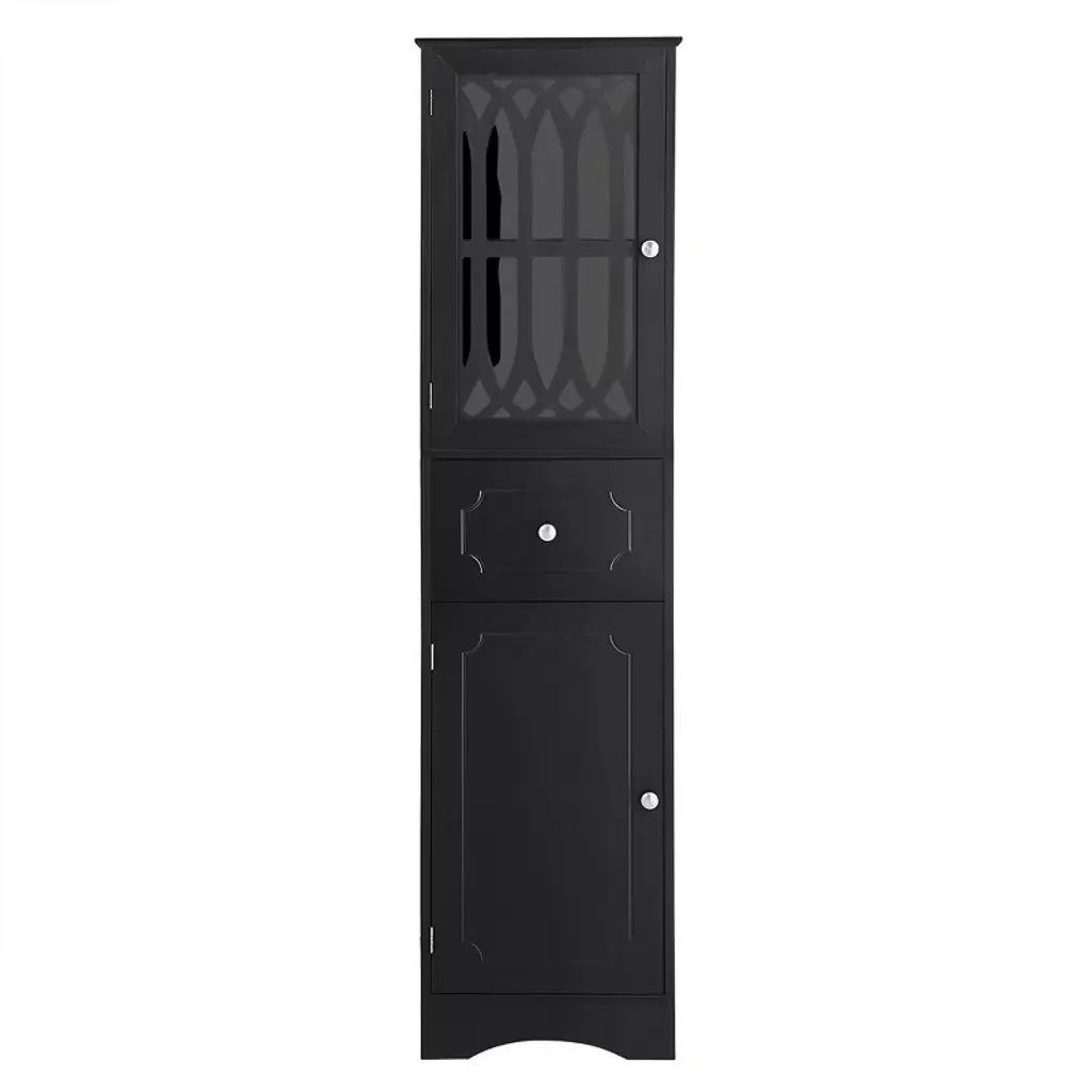 Tramull Black Tall Bathroom Cabinet With Drawer & Acrylic Doors, Freestanding Storage With Adjustable Shelf