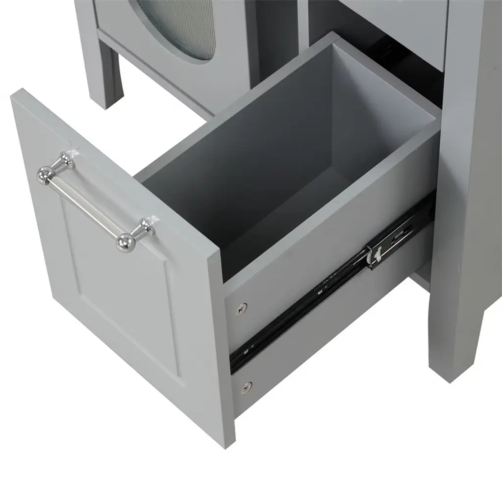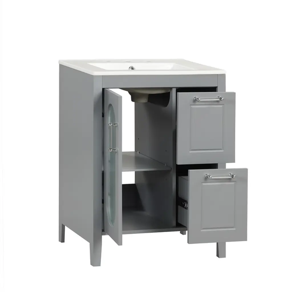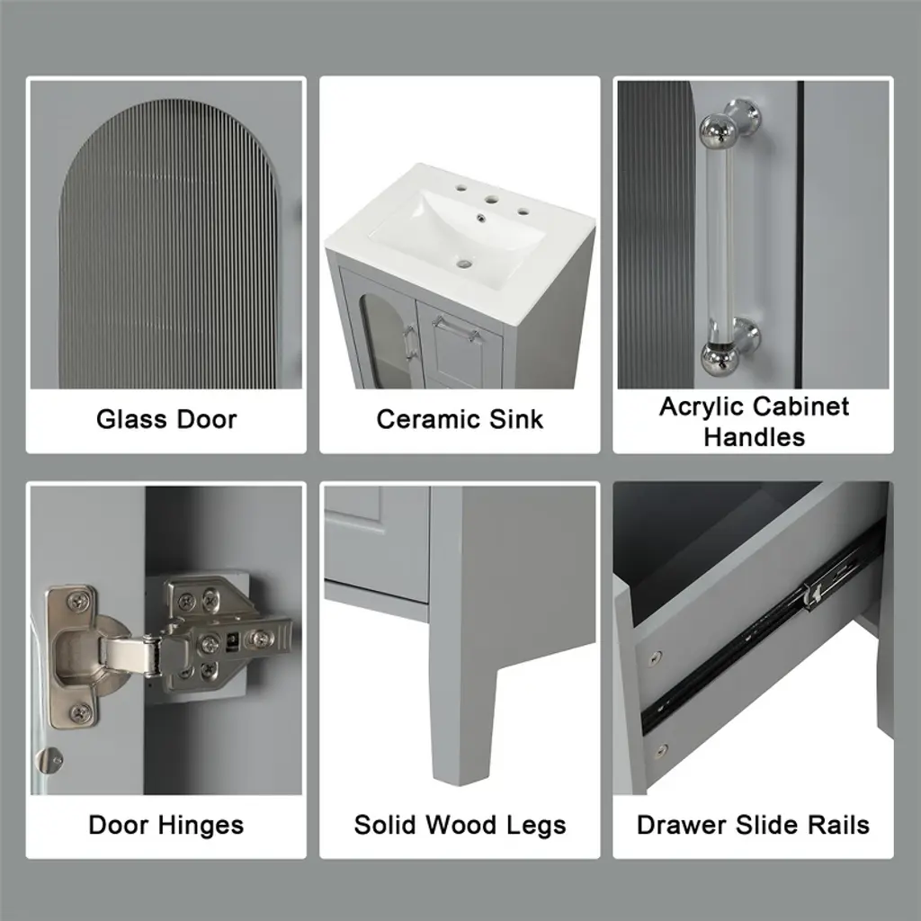 Tramull Gray Elegant Bathroom Vanity With Ceramic Sink, Solid Wood & Mdf Construction, Adjustable Shelf & Glass Door