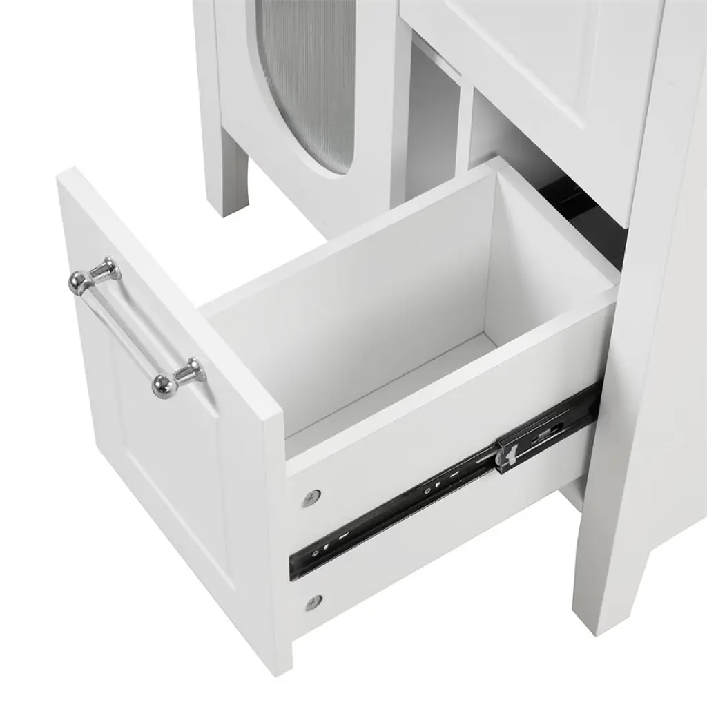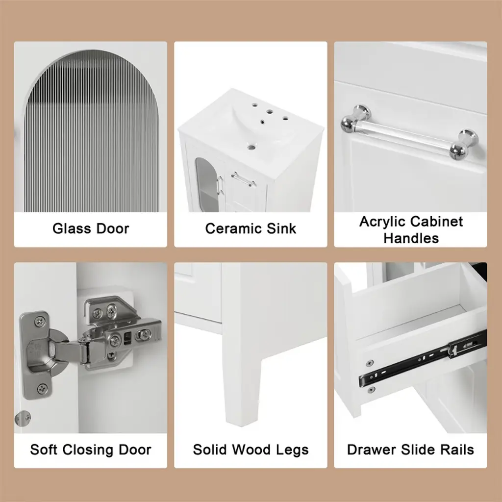 Tramull White Elegant Bathroom Vanity With Ceramic Sink, Solid Wood & Mdf Construction, Adjustable Shelf & Glass Door
