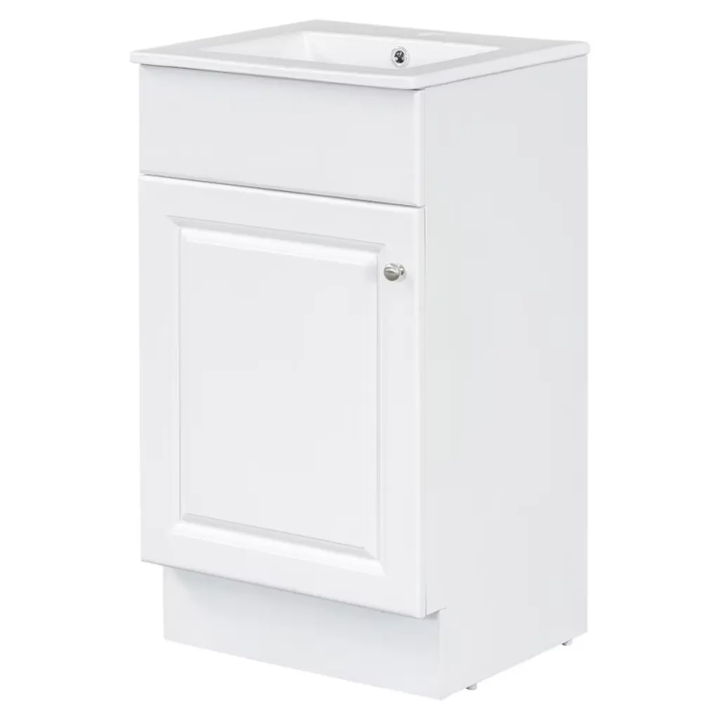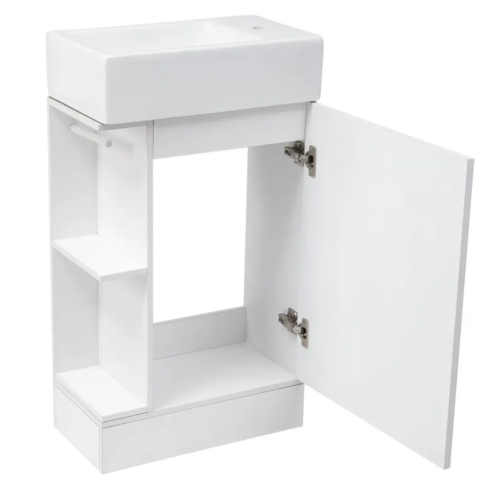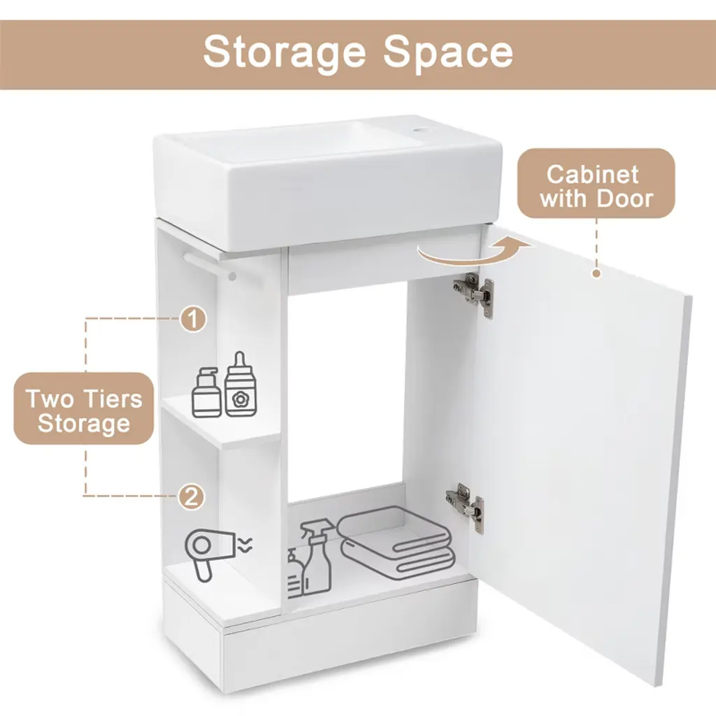 Tramull White Modern Bathroom Vanity With Ceramic Sink, Two-tier Shelf & Adjustable Left/right Orientation