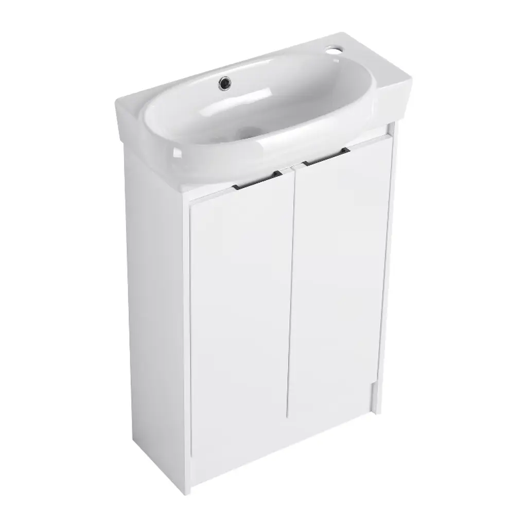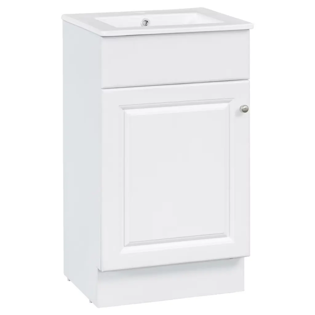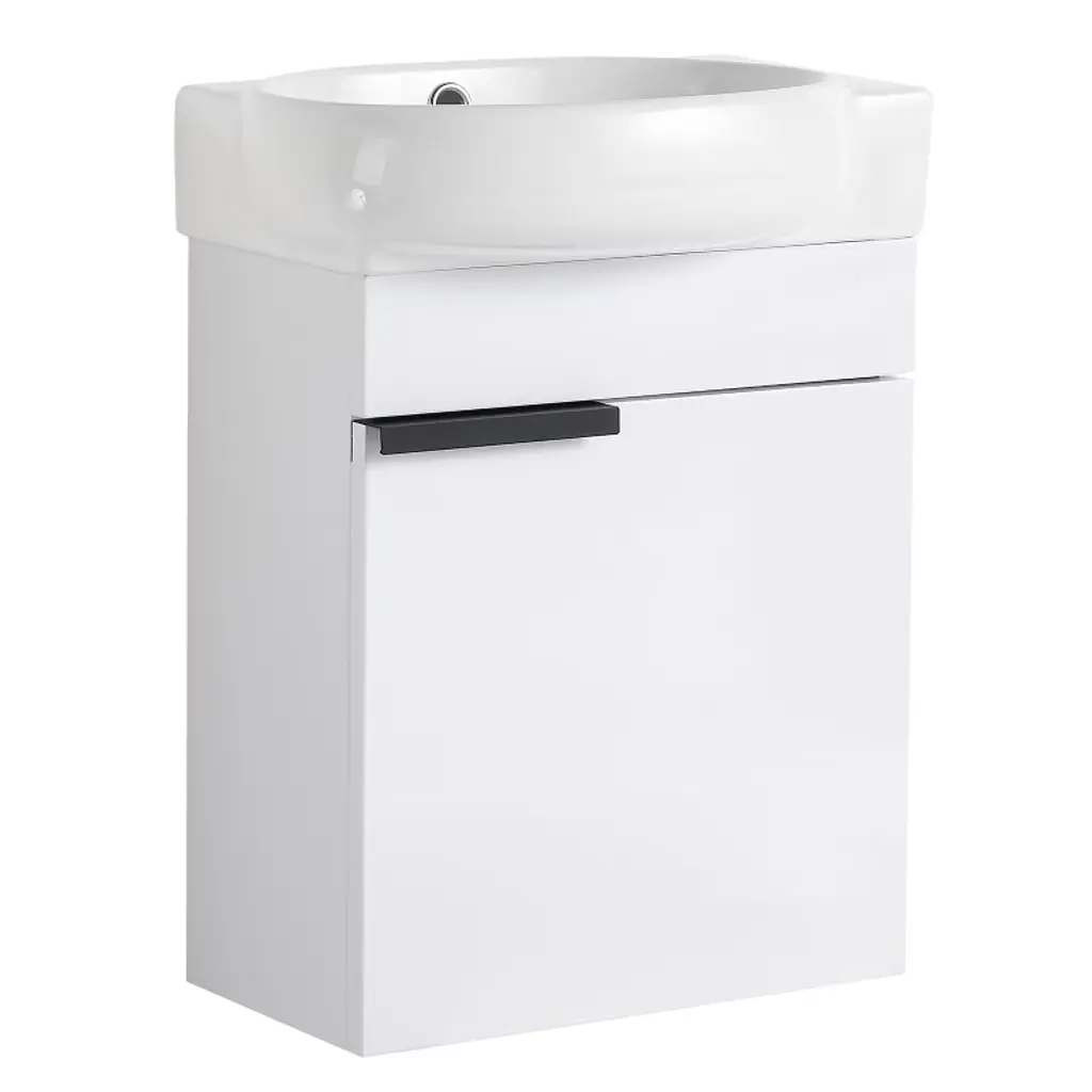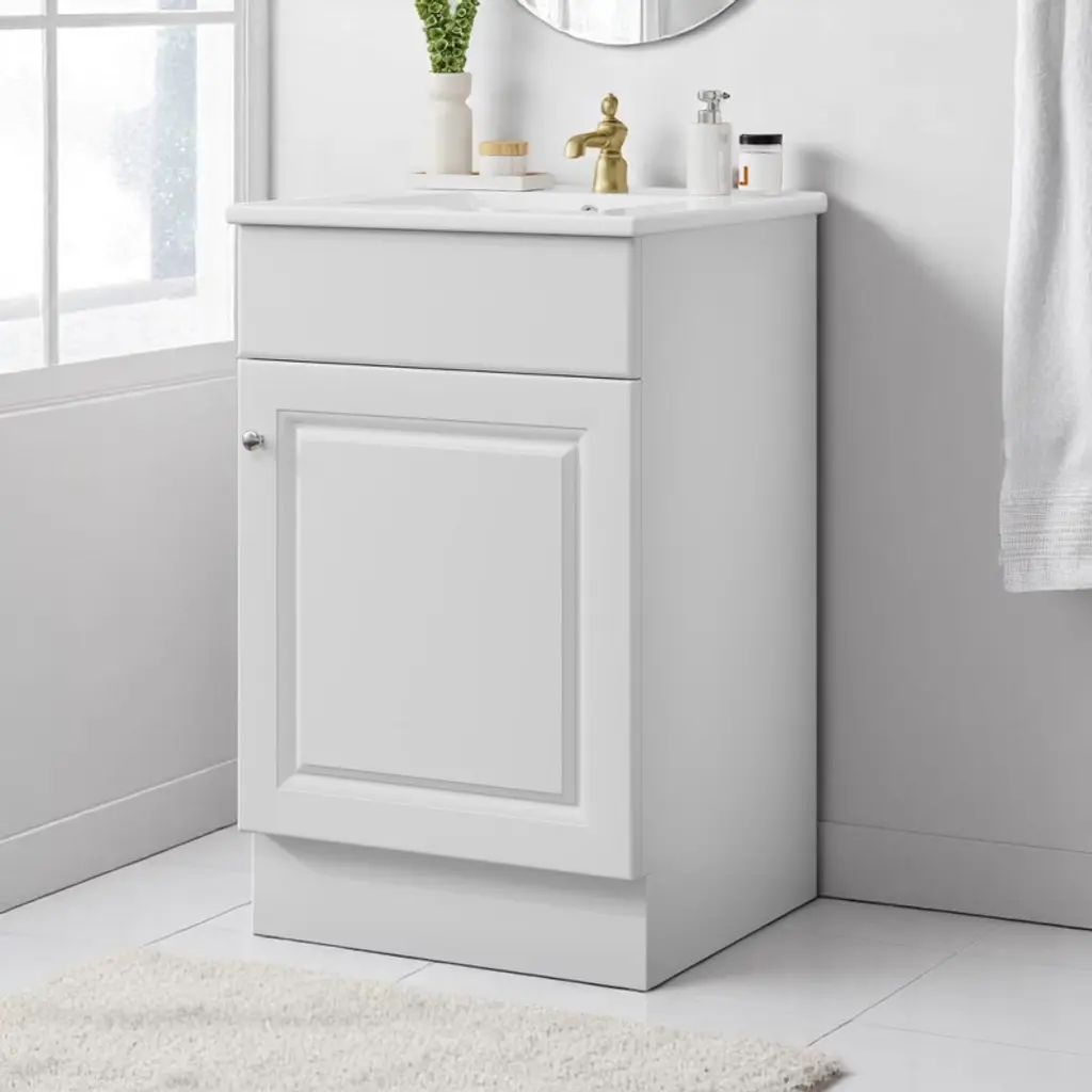 Tramull White Modern Bathroom Vanity With Ceramic Sink, Two-tier Shelf & Adjustable Left/right Orientation