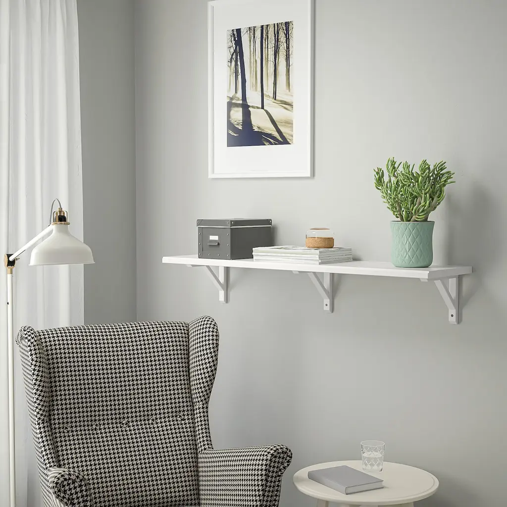 TRANHULT / SANDSHULT Wall shelf - white stained aspen 47 1/4x11 3/4 ". A simple and practical wall shelf that you can use for storage and as a display shelf. With a wall shelf, you make the most of the wall area, while freeing up space on the floor. Screws are not included.