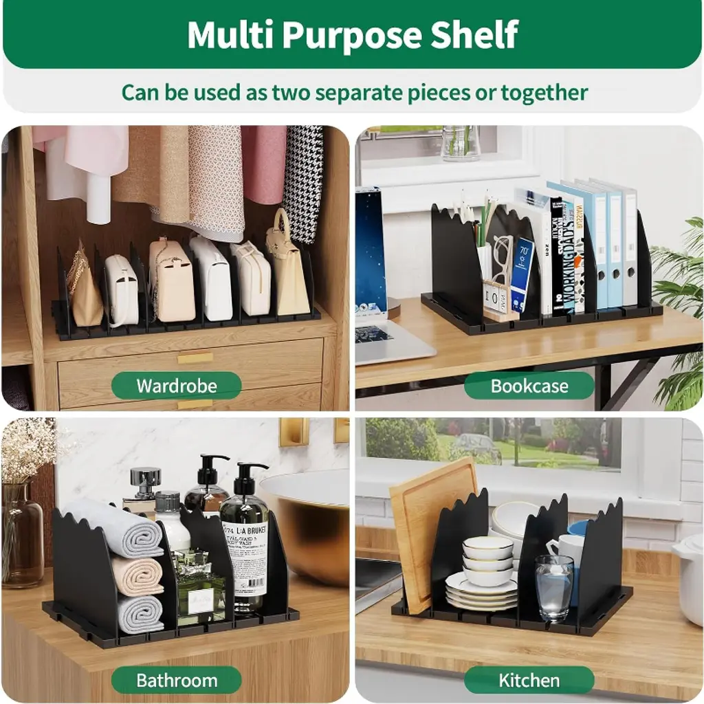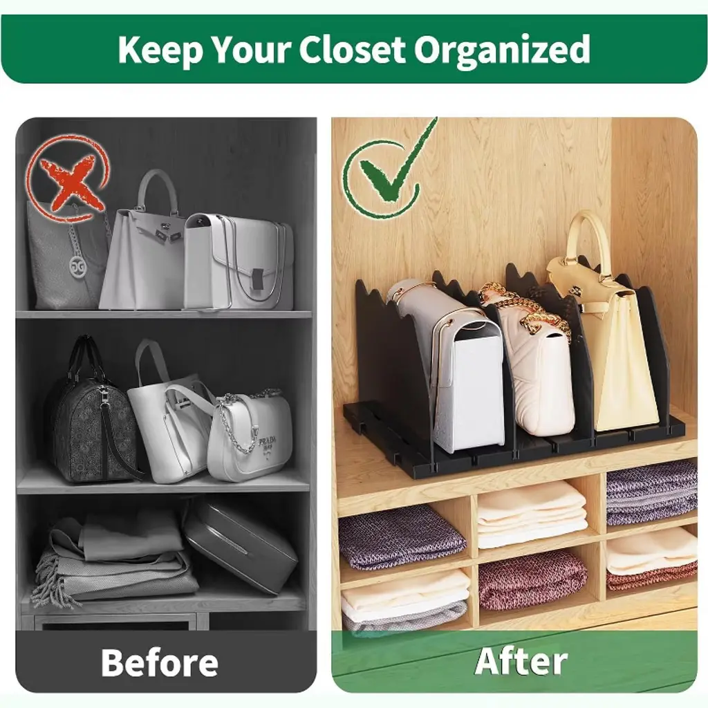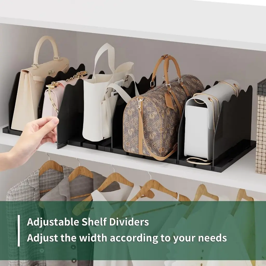 Transform Clutter into Order with Crystal Clear Precision! Tired of collapsing purses and tangled files? Our Premium Adjustable Shelf Dividers are your ultimate clutter-busting secret weapon! Engineered for luxury bag collectors and organization enthusiasts, this 8-piece set (2 complete bases + 8 dividers) brings military-grade precision to any space.