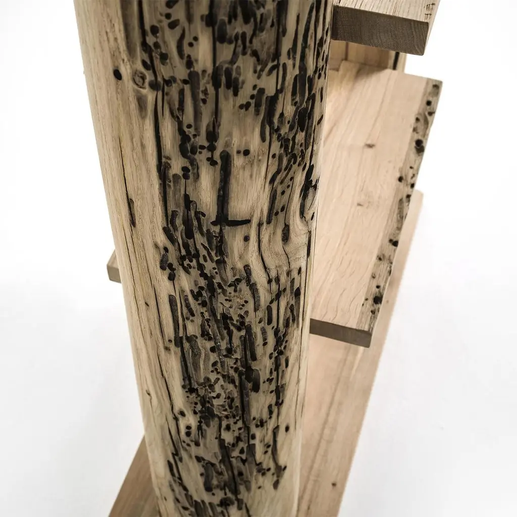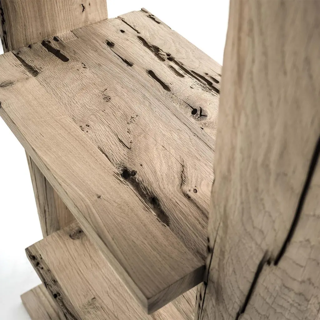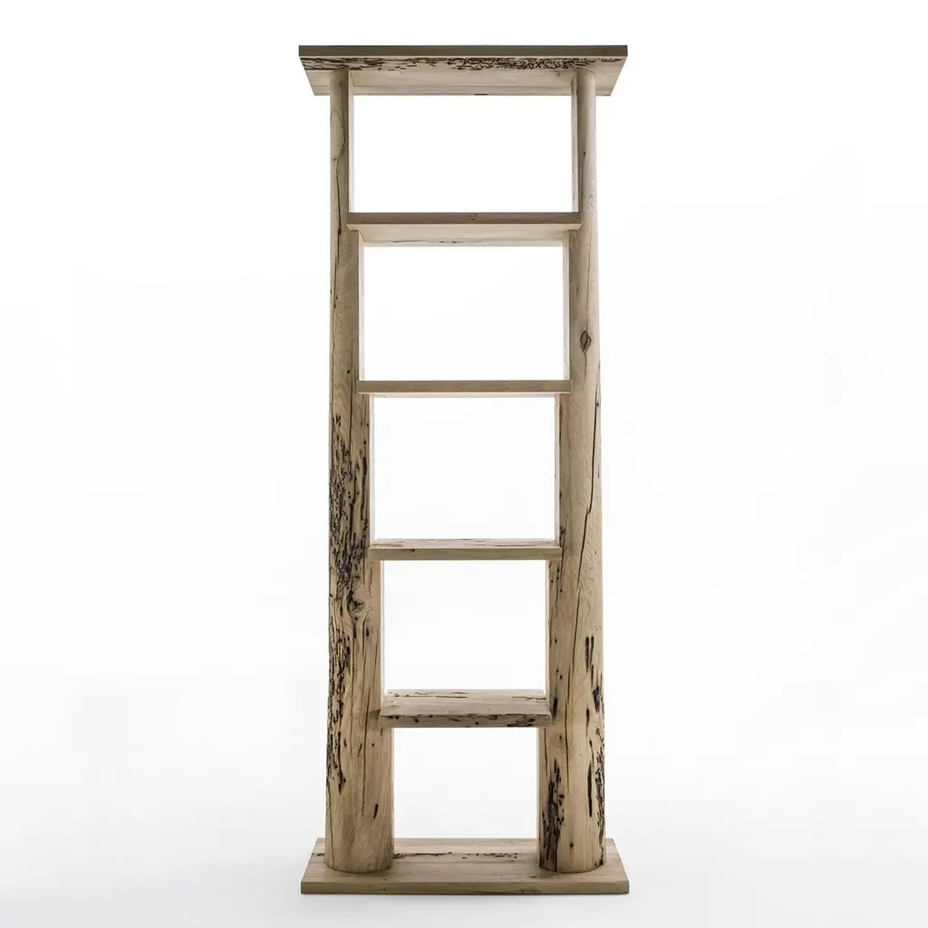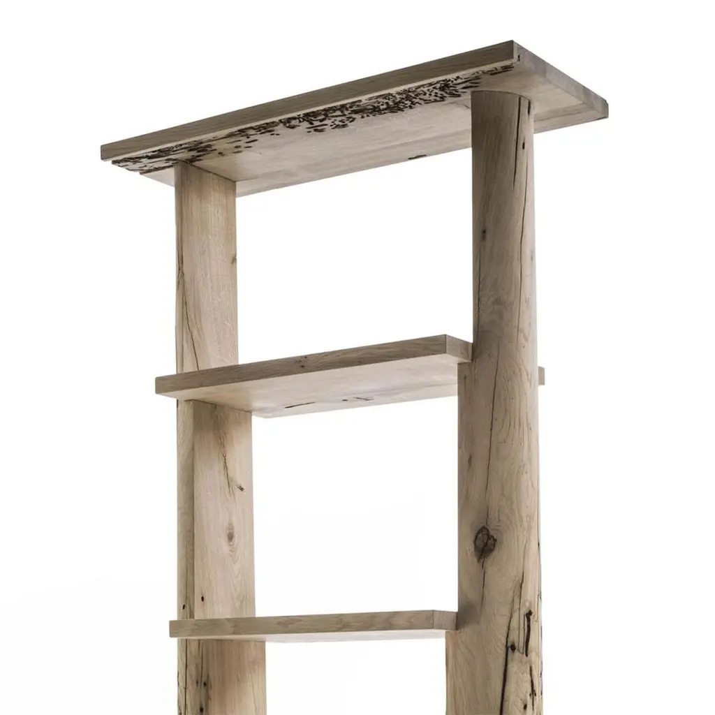 Shelf tree-shape large with structurein solid raw oak in bricolle finish, with 4 shelves.
