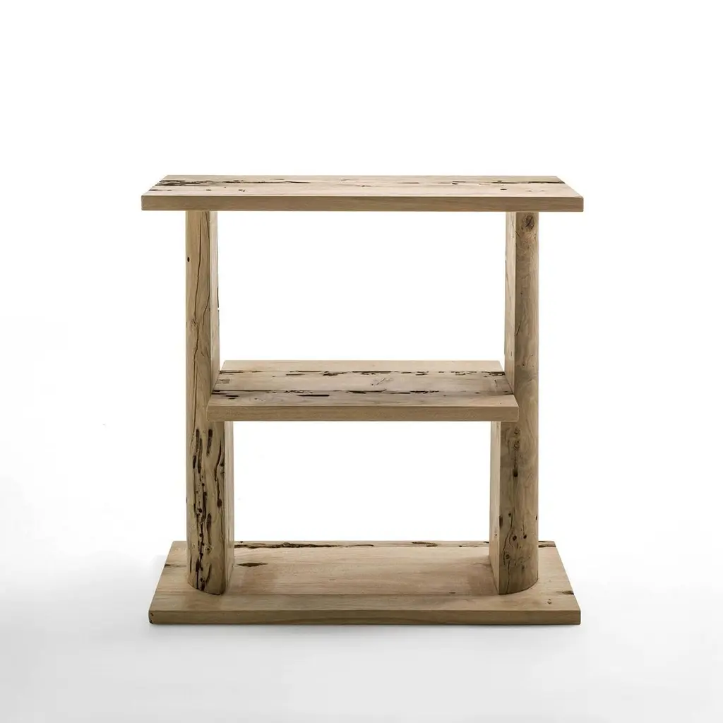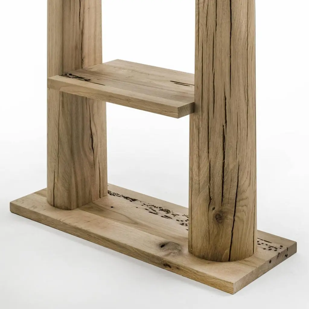 Shelf tree shape medium with structureIn solid raw oak in bricolle finish, with 3 shelves.Also available in shelf tree shape small.Available in:L 80 x D 30 x H 166.4cm. Price 7500,00€L 80 x D 30 x H 85.2cm. Price 5900,00€.