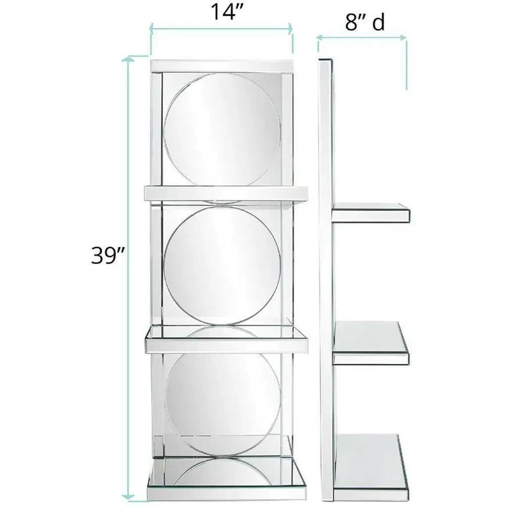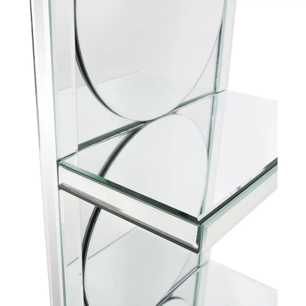 Beautifully constructed, this multi mirrored wall shelf features three shelves and small beveling throughout. Every surface is mirrored allowing for the most amazing refection's to showcase your collectibles or a works of art. Designed for the optimum visual impact these shelves fit into a traditional decor as well as the most contemporary lifestyle.