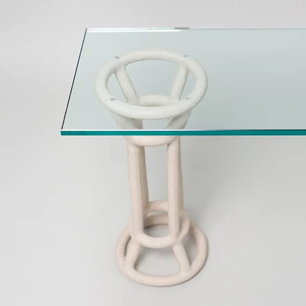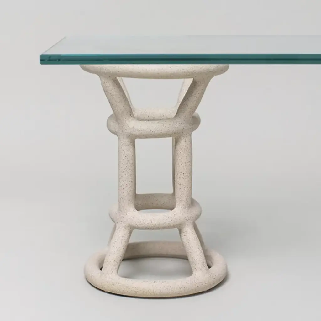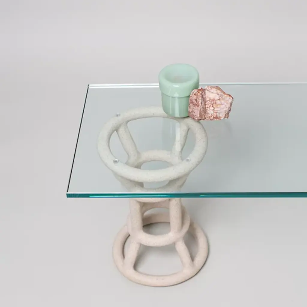 The Turret Shelf from SIN is a bold and balanced addition to the award-winning Fig shelving system. Inspired by classical columns and pedestals, reinterpreted through wireframe-style handcrafted ceramic bases with an open, tower-like design. Topped with a half-inch thick bronze tempered glass shelf, it balances the artisanal texture of the ceramic with the contemporary simplicity of the smooth glass shelf. The material contrasts draw the eye, blending airy aesthetics with a sturdy structure to add depth to any interior.