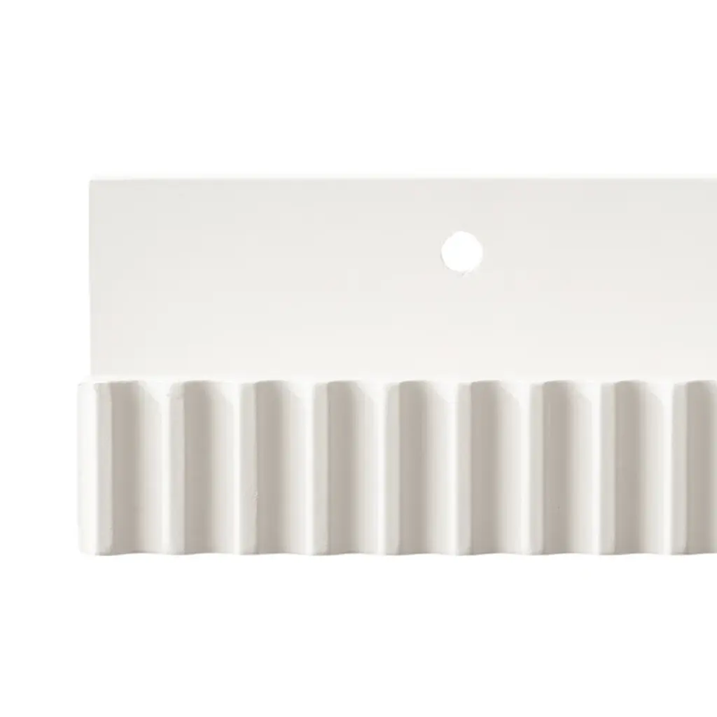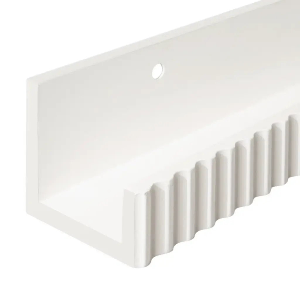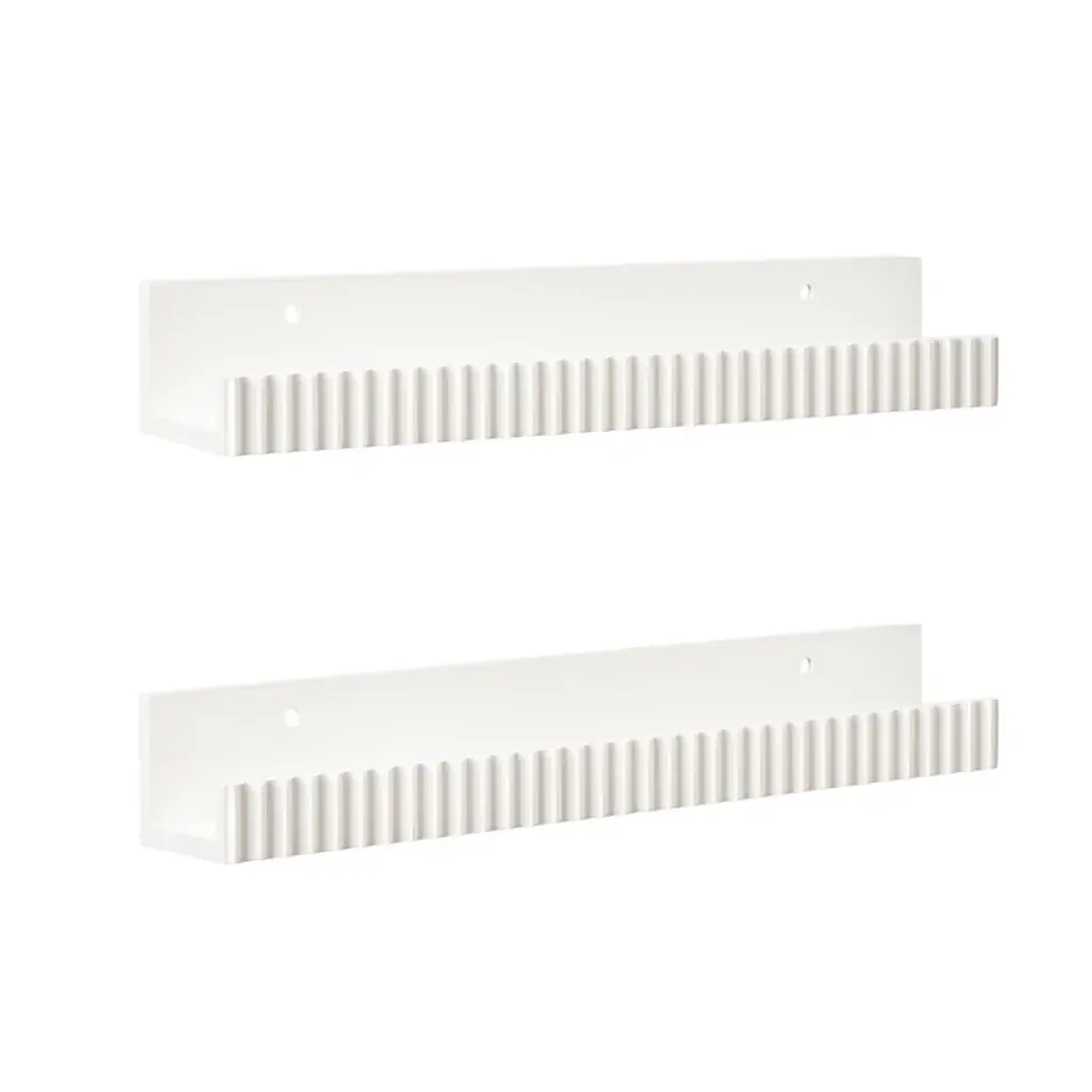 The Furrow ledge shelf set is a narrow method for displaying your favorite pictures and keepsakes in small spaces. This floating wall shelf set contains two shelves to mount flush against your wall and create a beautiful display space. This wooden shelf set takes inspiration from modern design with a delightful scalloped face that adds organic texture to your space. Its heavy-duty wooden construction has a weight capacity of 15 lbs. to mount your gallery without fear! Display this modern and sophisticated shelf ledge as a gallery in your bedroom, living room, office, entryway, bathroom, or any other room that needs extra space with a sleek, sophisticated silhouette. This shelf set comes fully assembled with hardware included, along with pre-drilled holes for easy wall mounting.