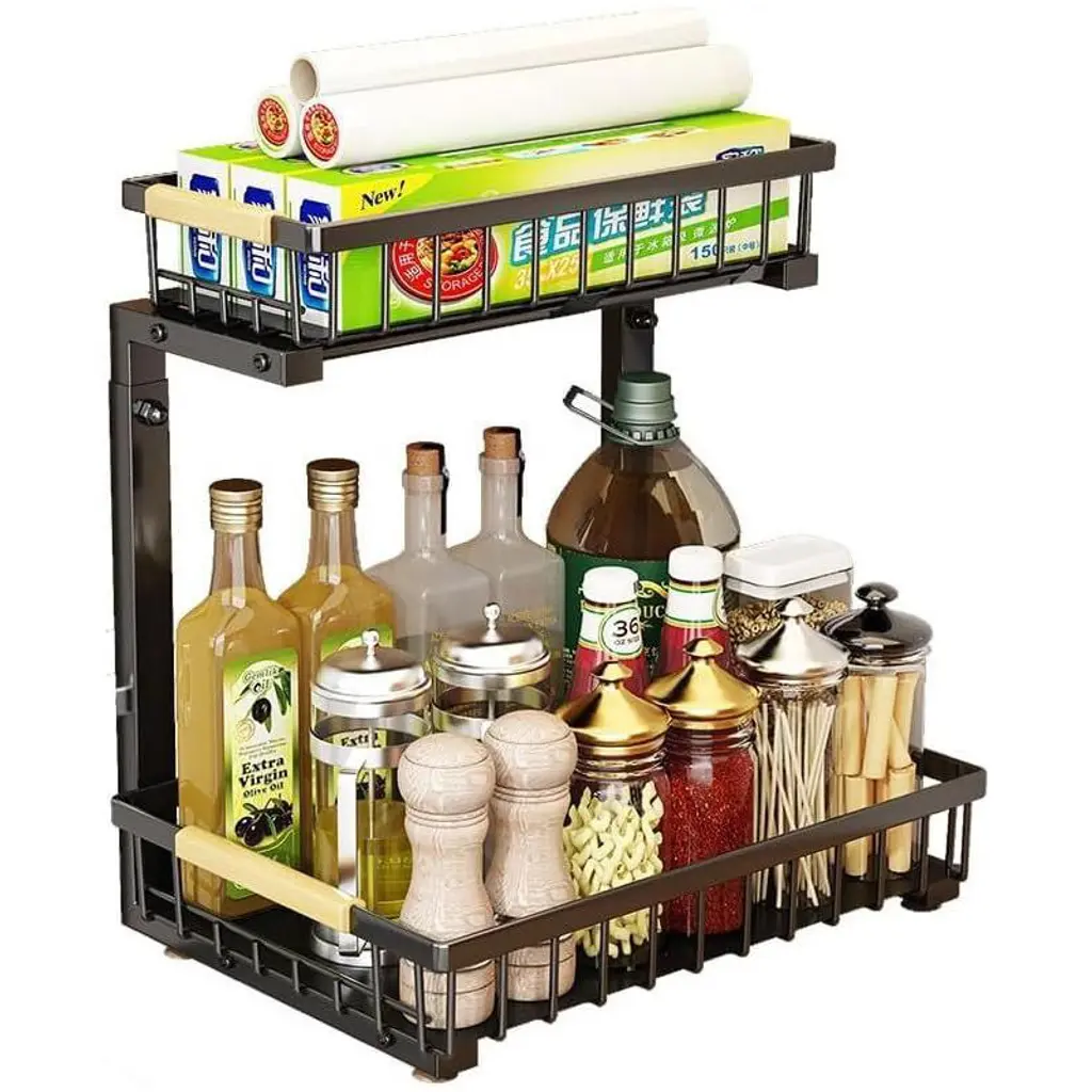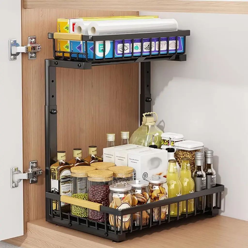 Under Sink Organizer, Pull Out Cabinet Organizers 2 Tier Slide Sink Steel Shelf Cabinet Storage Shelves, Under Sink Storage For Kitchen Bathroom