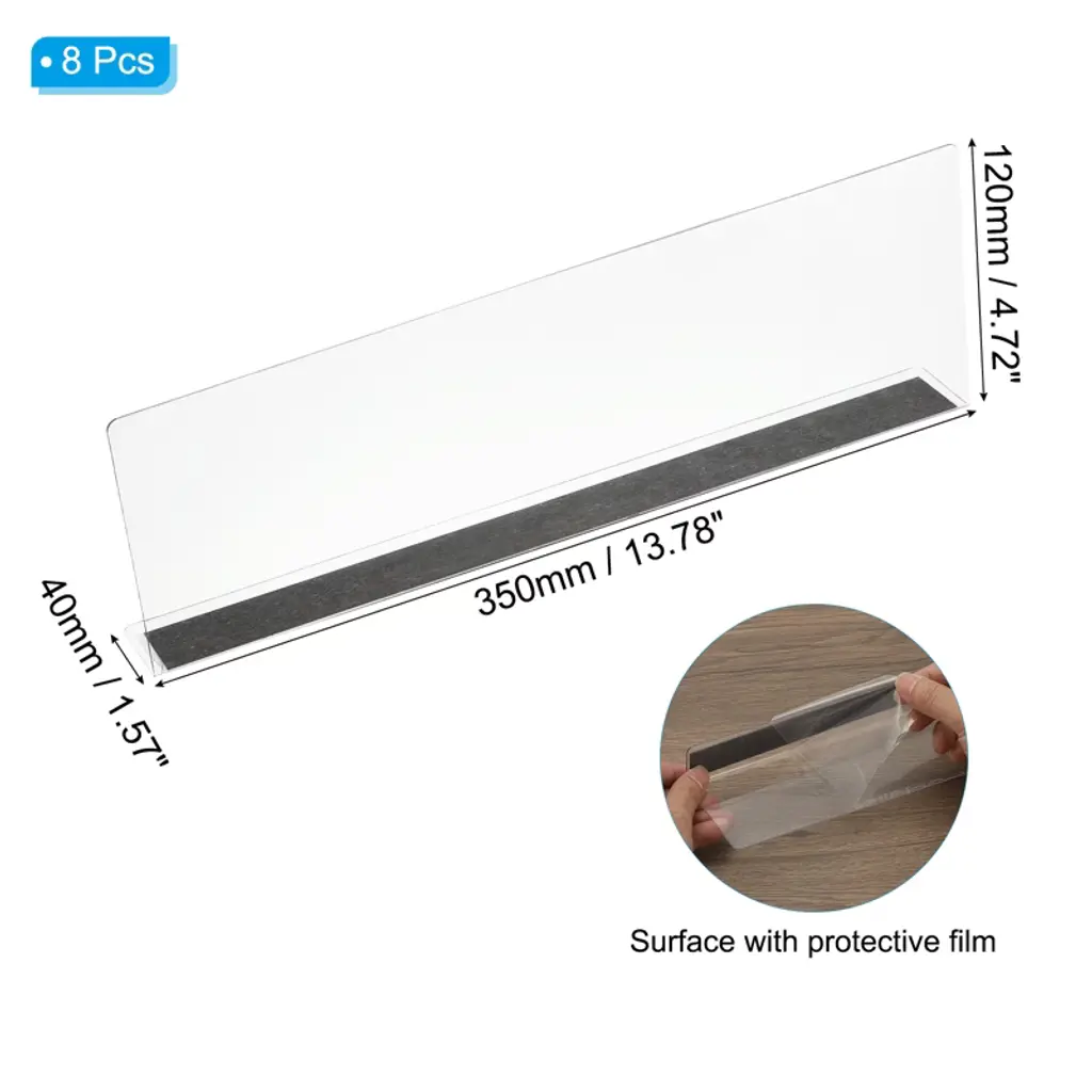 Unique Bargains Acrylic Magnetic Smooth L-shaped Bedroom Kitchen Office Shelf Dividers 8 Pcs 13.8x1.6x4.8 Inch