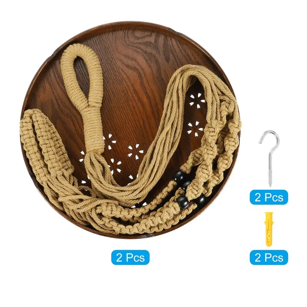Unique Bargains Home Decor Macrame Wooden Indoor Hanging Plant Shelf 2 Pcs Brown