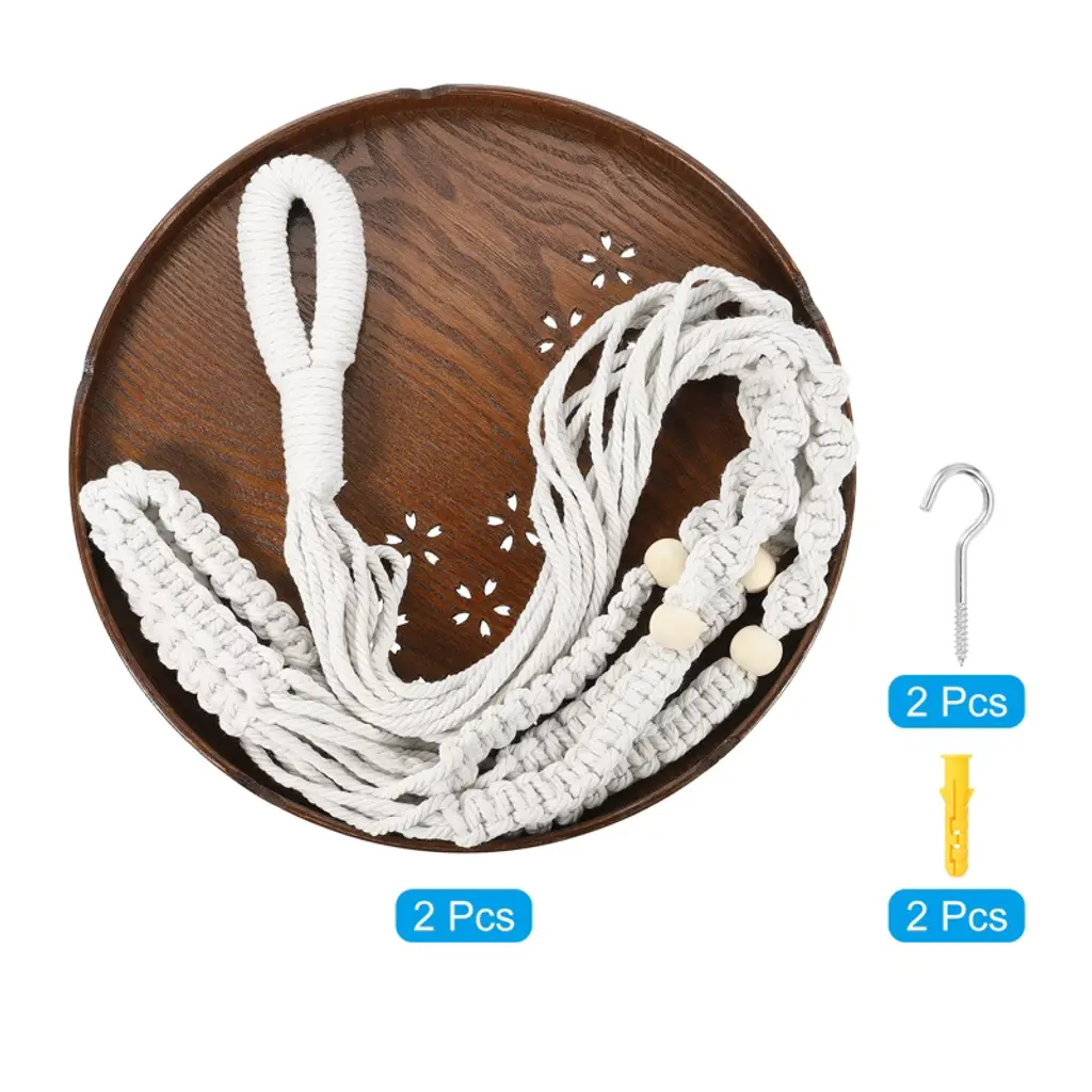 Unique Bargains Home Decor Macrame Wooden Indoor Hanging Plant Shelf 2 Pcs Light Brown
