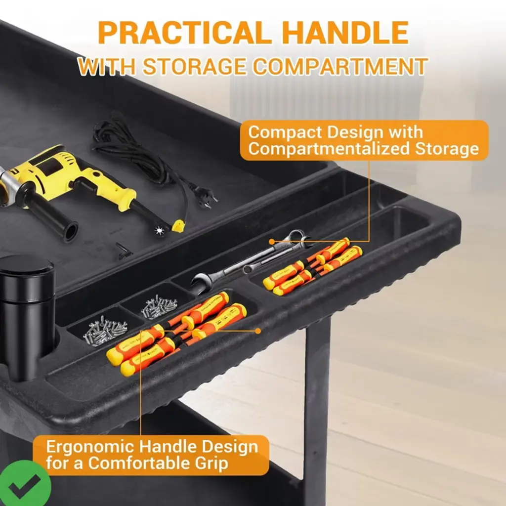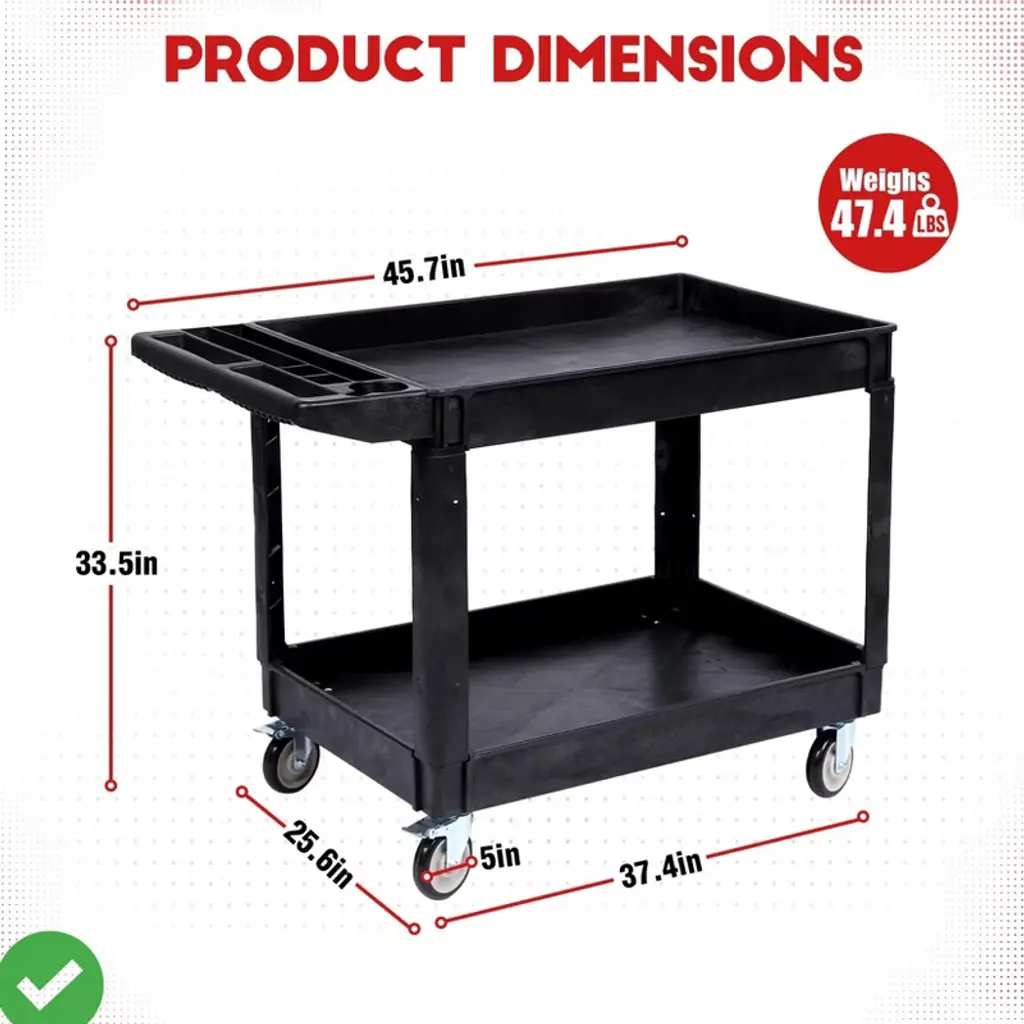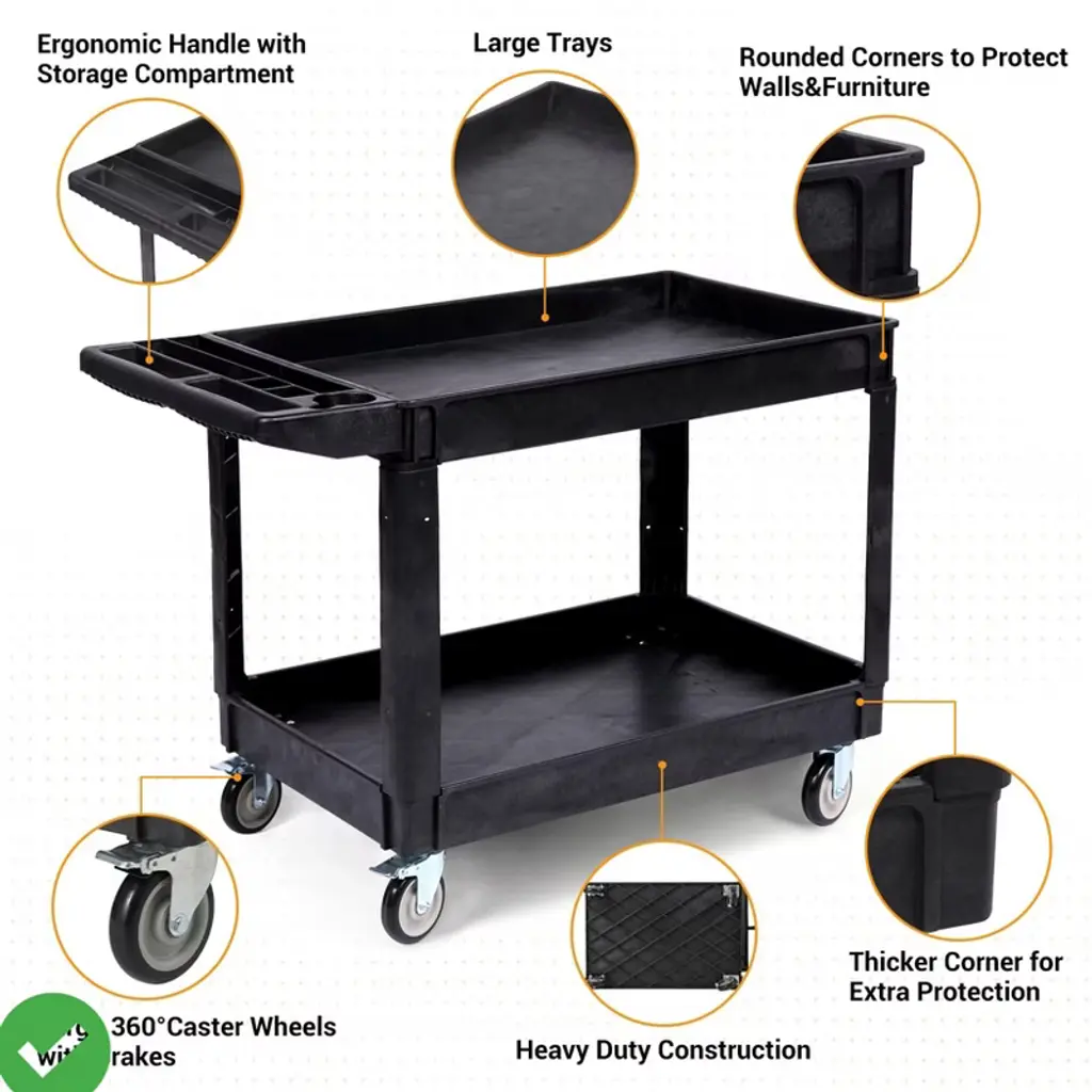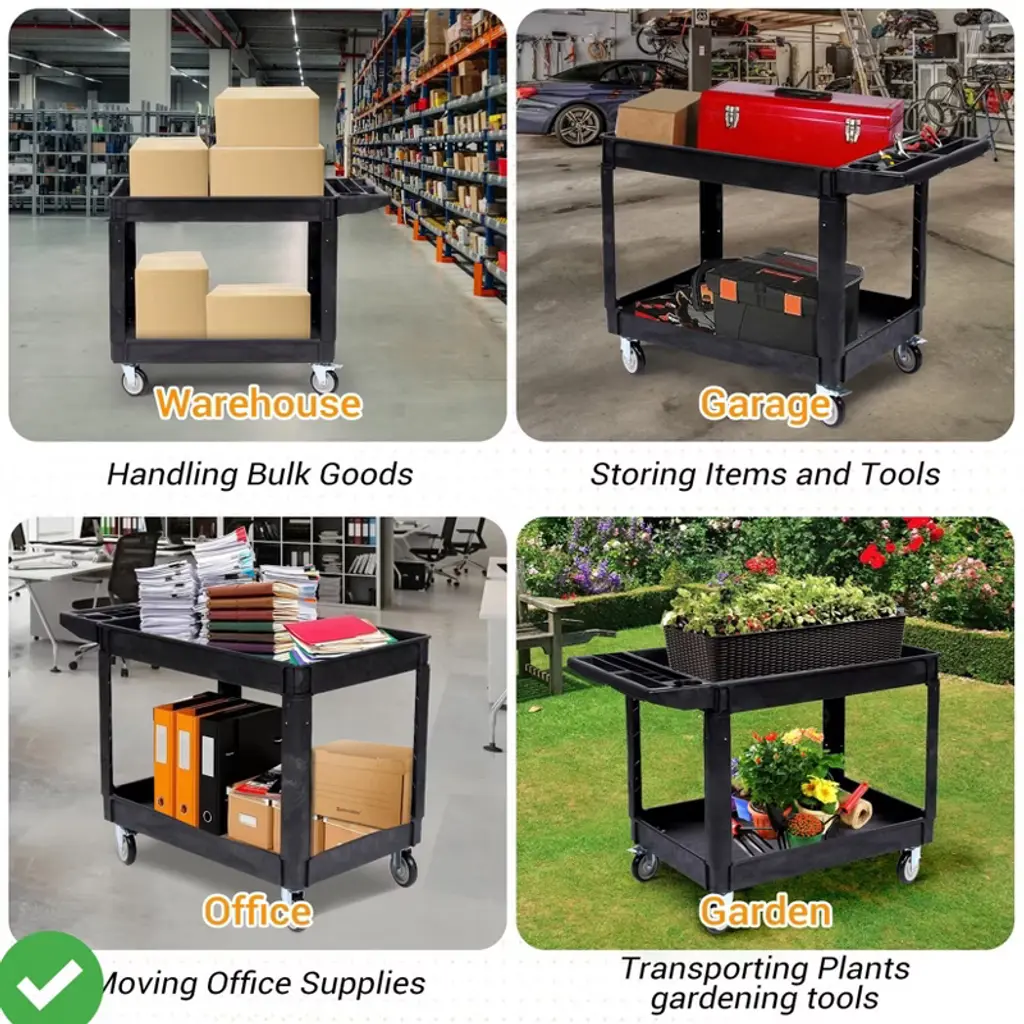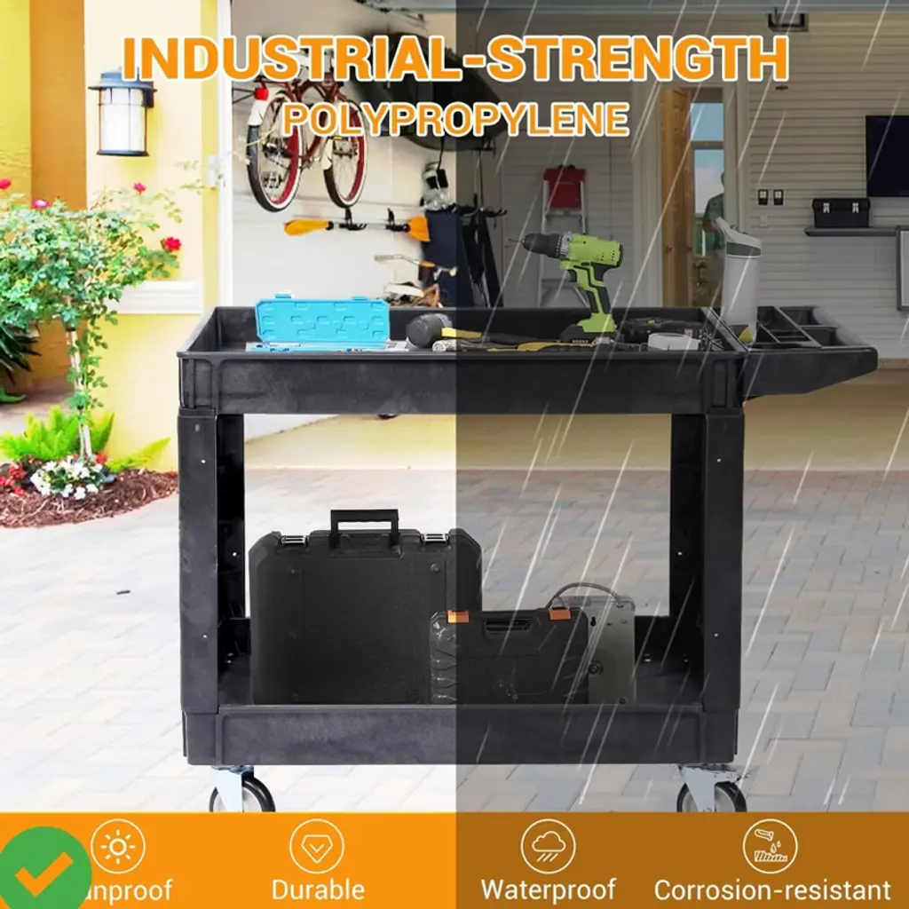 Built from high-density polyethylene, this heavy-duty utility cart resists water, corrosion, and everyday wear. Its smooth, non-porous surface wipes clean in seconds¡ªperfect for both indoor and outdoor use in workshops, garages, or gardens, Durable HDPE Construction.