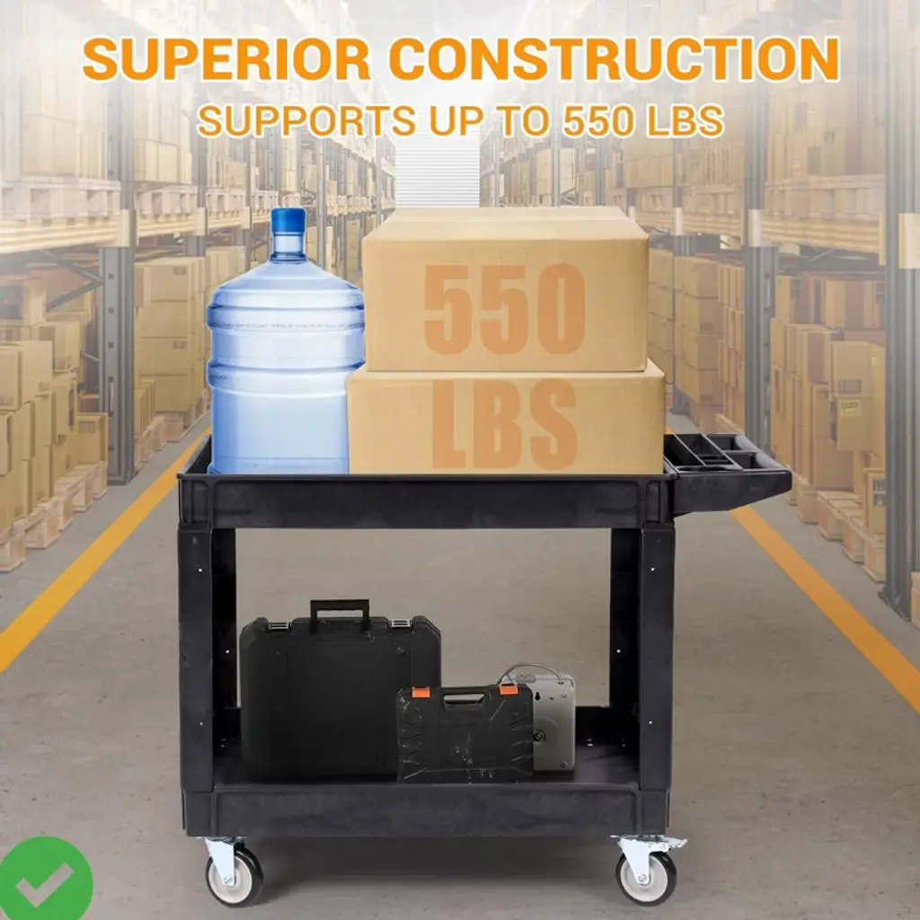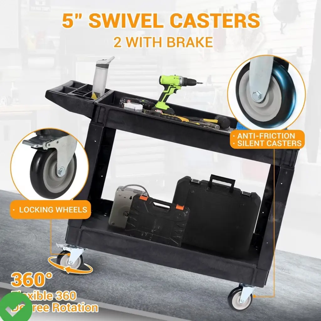 Utility Service Cart 2 Shelf-550lbs Heavy Duty Plastic Rolling Utility Cart With 360¡ã Swivel Wheels