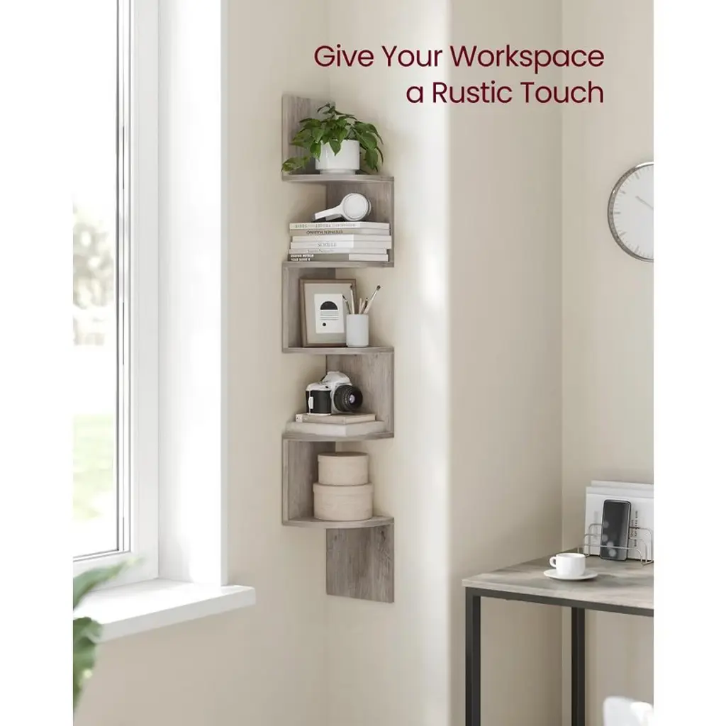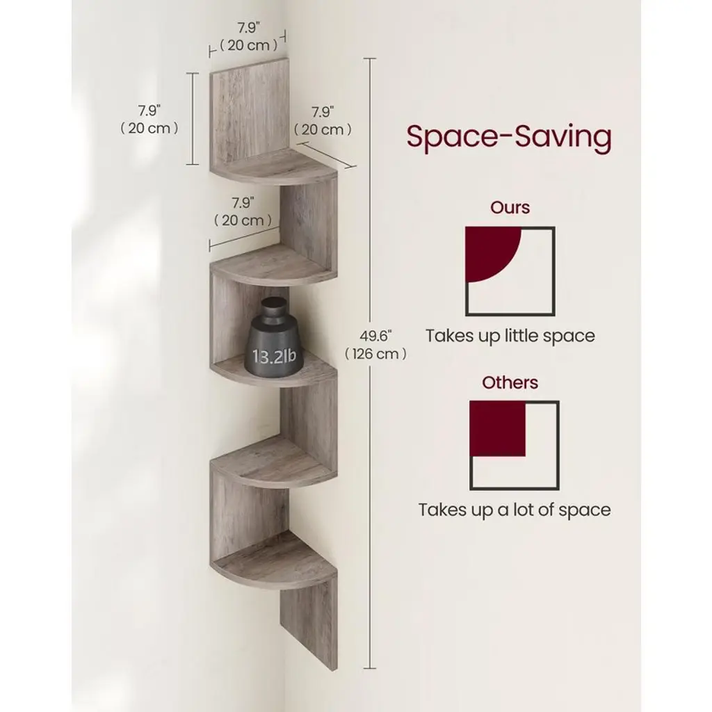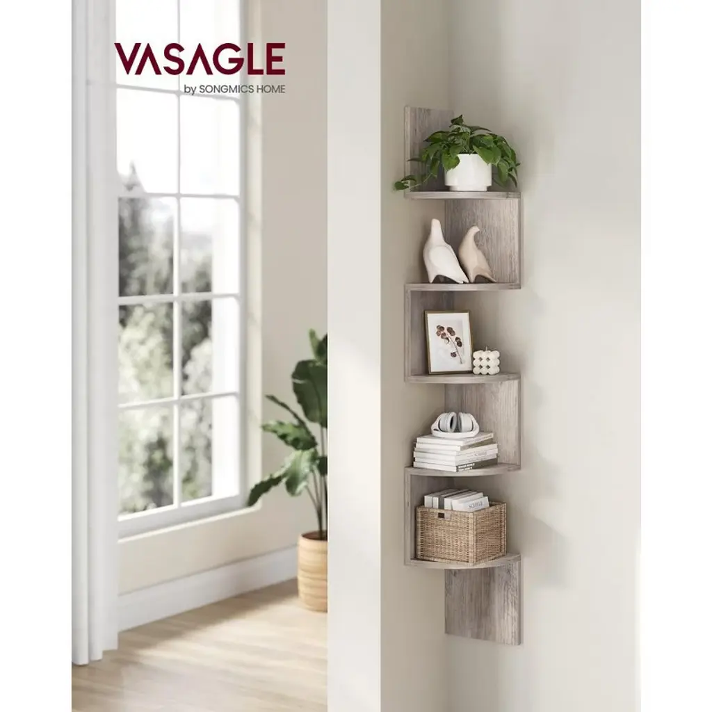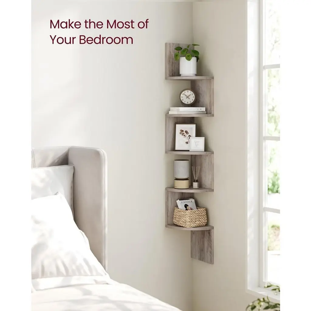 Vasagle Corner Shelf, 5-tier Floating Wall Shelf Heather Greige
