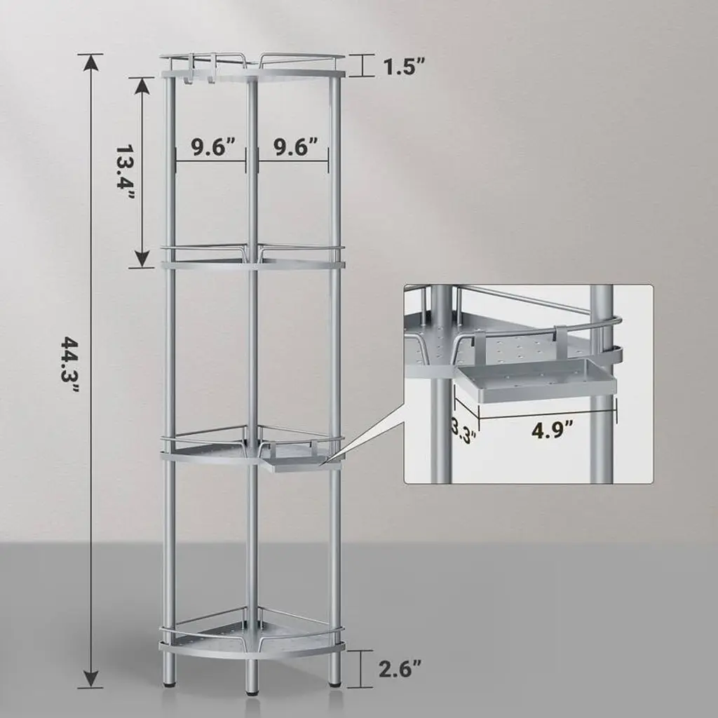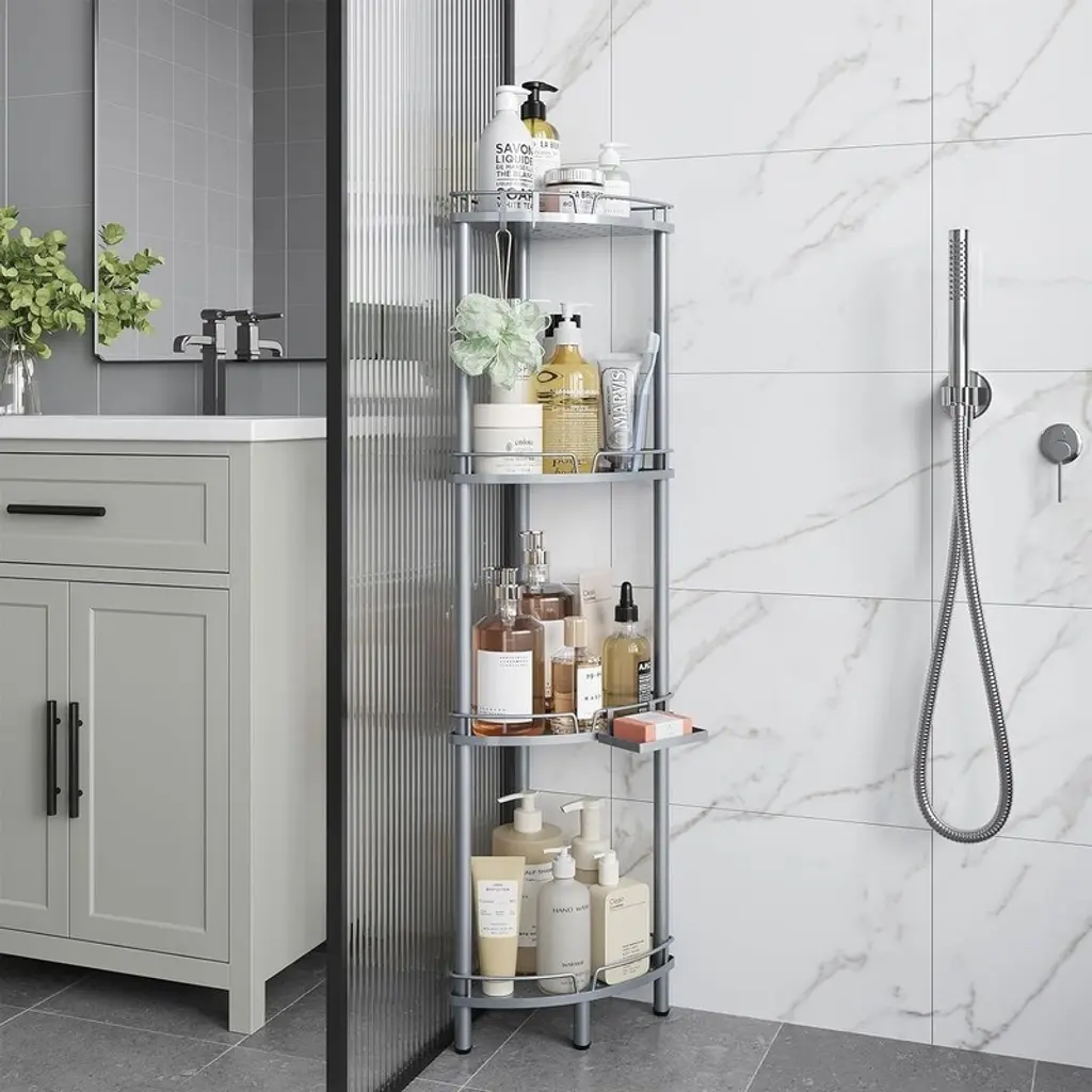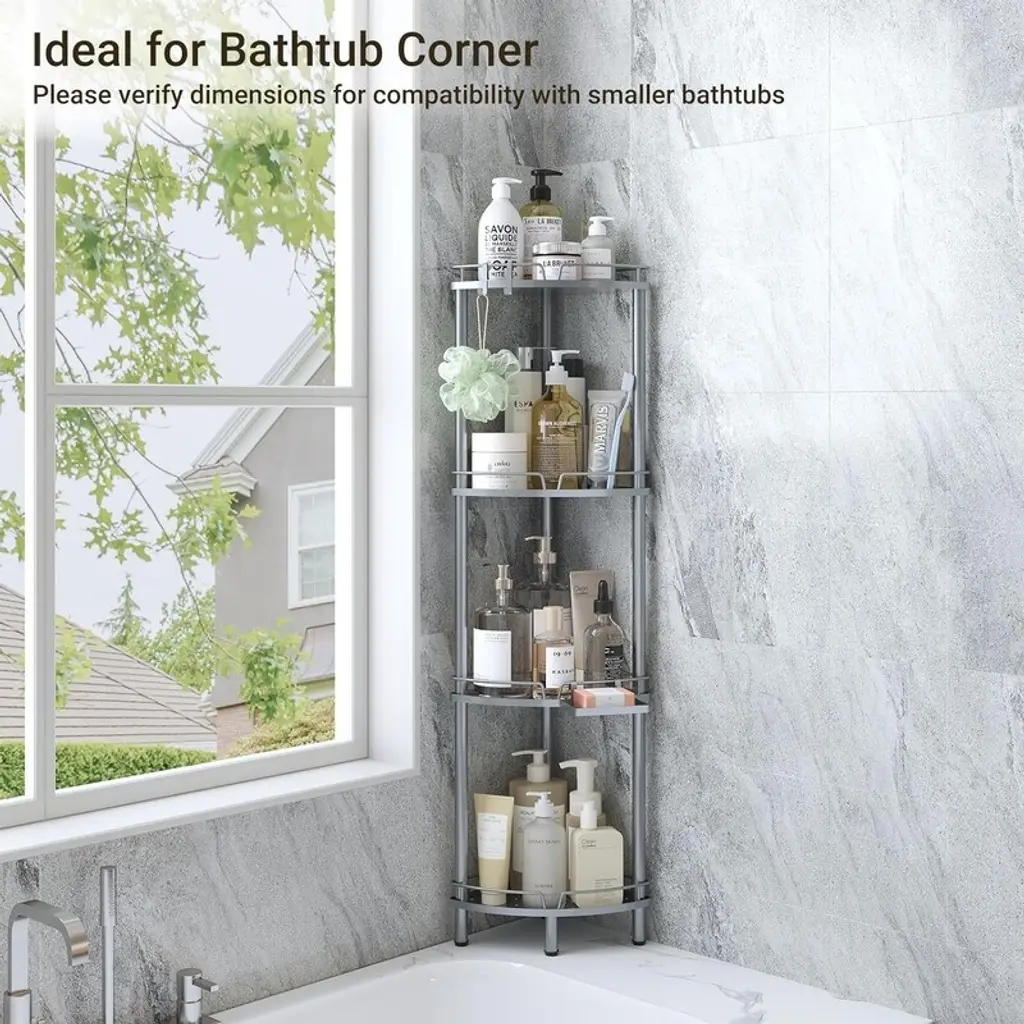 Vertical Shower Corner Shelf, Rustproof Metal Shower Organizer - Silver/size: 4 Tier