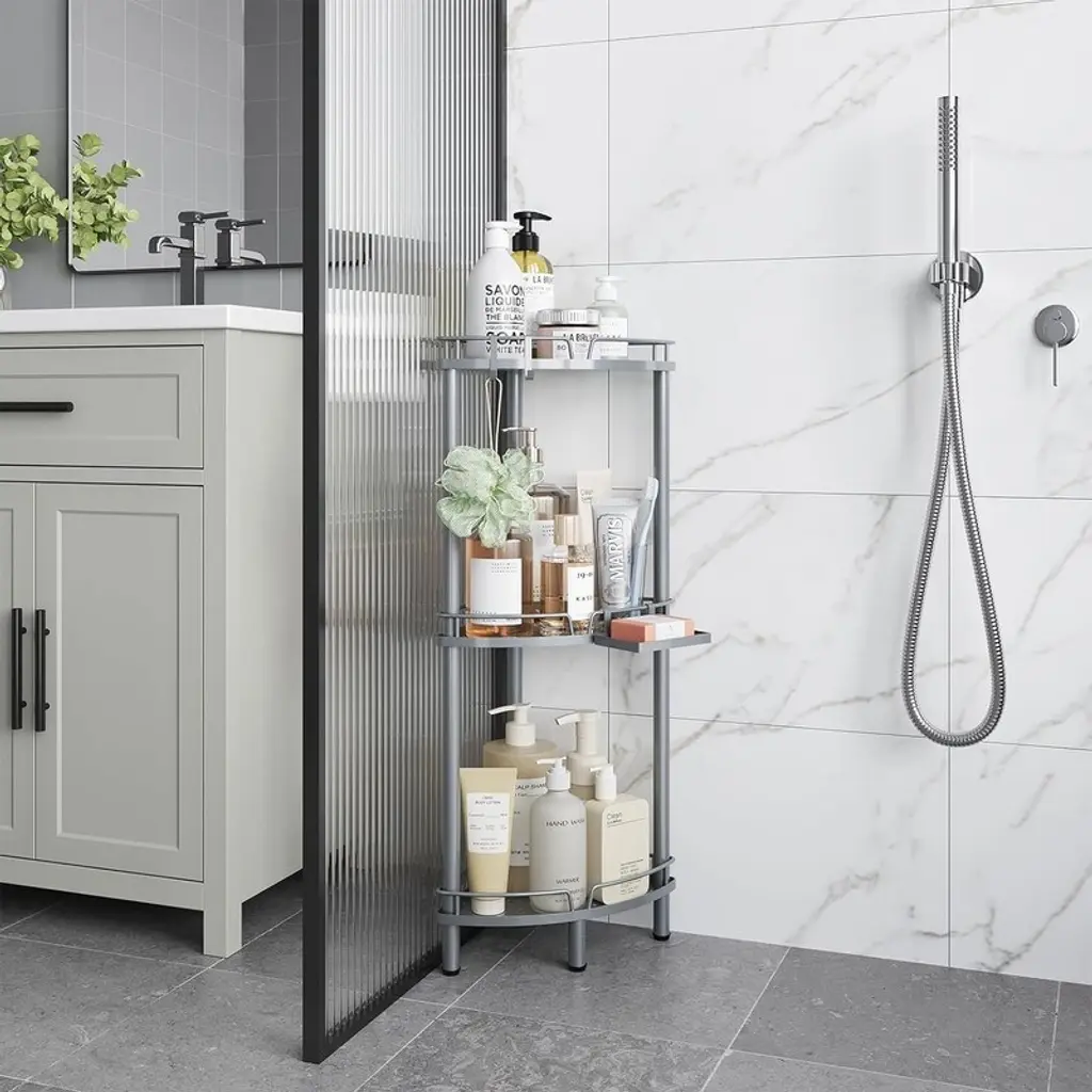 Vertical Shower Corner Shelf, Rustproof Metal Shower Organizer - Size: 3 Tier/silver
