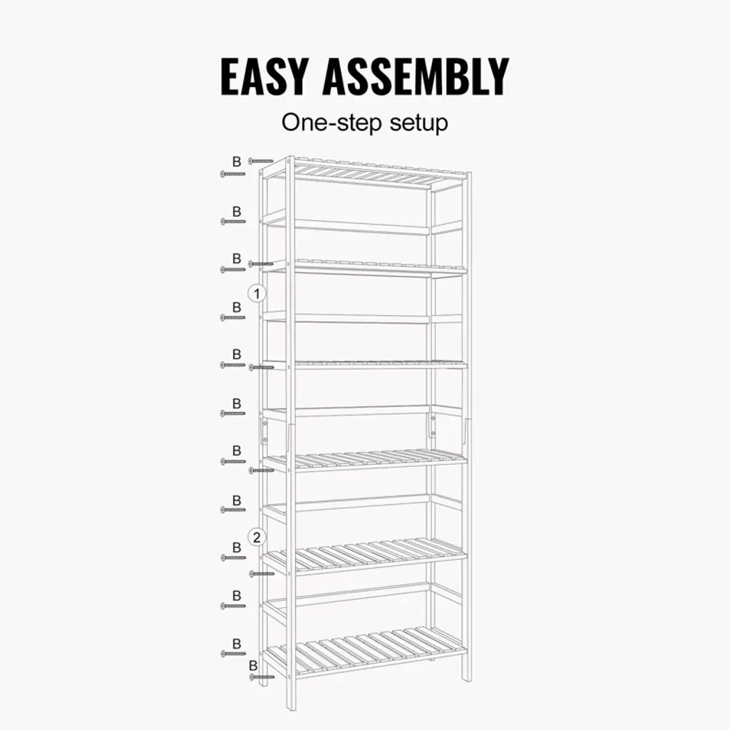 Vevor 6-tier Bamboo Shelf, Open Wood Bookshelf, Display Storage Rack Organizer, Freestanding Flower Plant Stand, Multifunctional Bookshelf, Natural