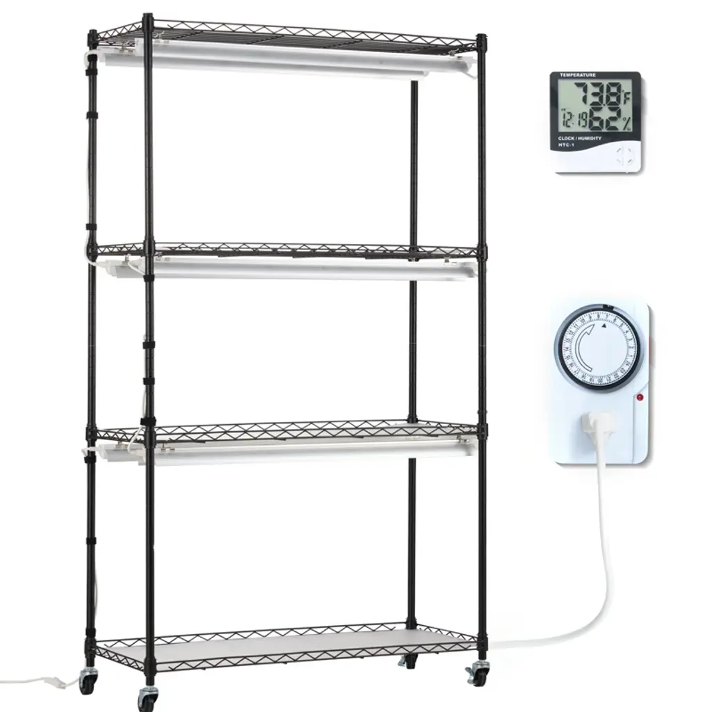Vevor Plant Stand With Grow Light, 4-tier Plant Shelf With 45w Full Spectrum Grow Light, 3 Mode Plant Light With Timer And Wheel, Black